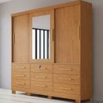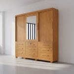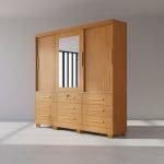 Guarda-Roupa Casal Athenas – 3 Portas de Correr – 9 Gavetas – Nature – 1,80 m – Com Espelho