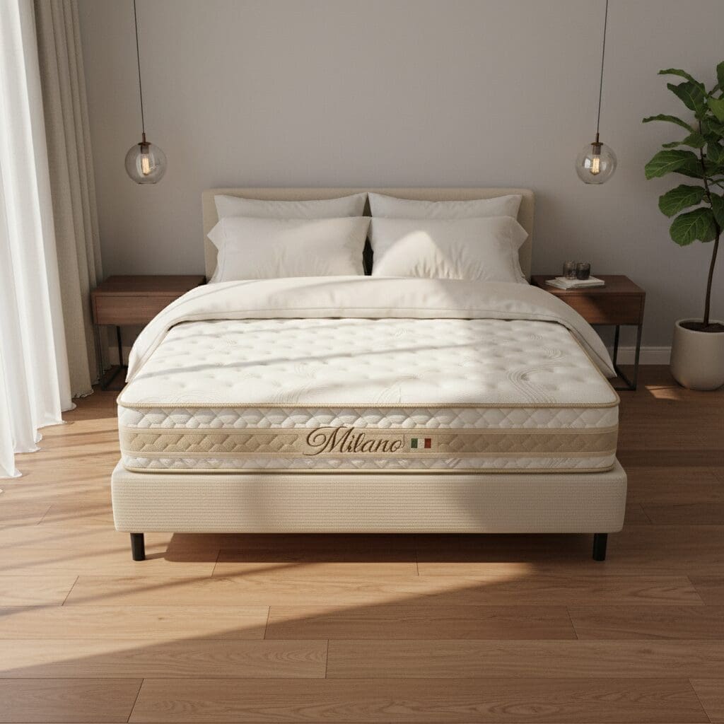 O Colchão Casal Milano foi desenvolvido para oferecer sustentação superior, indicado para pessoas de até 150 kg por lado. Com molas ensacadas individuais (177 molas/m²), espuma D28 e base de EPS com 14 cm, garante firmeza, durabilidade e redução da transferência de movimentos. Ideal para quem busca equilíbrio entre maciez e suporte anatômico.