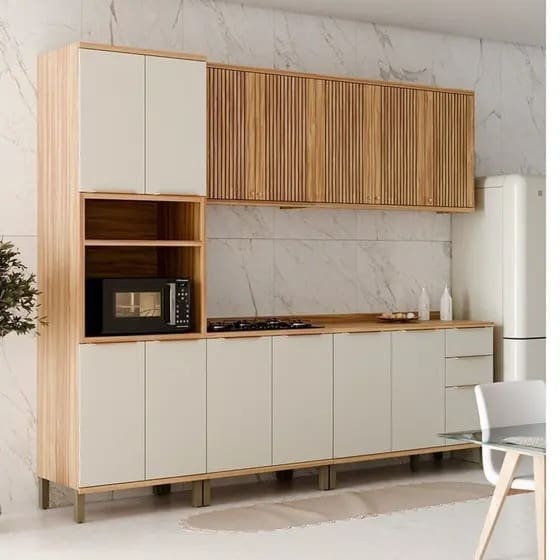 Este conjunto de cozinha oferece uma solução prática e elegante para o seu espaço.