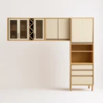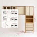 Seus diferenciais incluem adega em “Z” exclusiva, espaço para micro-ondas e puxadores de alumínio champanhe, que trazem um toque contemporâneo ao ambiente. Os pés em ABS com regulagem de altura garantem estabilidade, enquanto as dobradiças slow motion e corrediças telescópicas proporcionam suavidade e conforto no uso diário. Além disso, você pode optar por aéreos com portas lisas ou com vidro reflecta, ajustando o visual ao seu gosto.