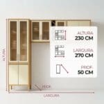 Seus diferenciais incluem adega em “Z” exclusiva, espaço para micro-ondas e puxadores de alumínio champanhe, que trazem um toque contemporâneo ao ambiente. Os pés em ABS com regulagem de altura garantem estabilidade, enquanto as dobradiças slow motion e corrediças telescópicas proporcionam suavidade e conforto no uso diário. Além disso, você pode optar por aéreos com portas lisas ou com vidro reflecta, ajustando o visual ao seu gosto.