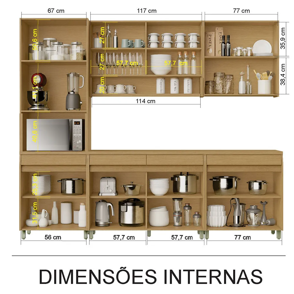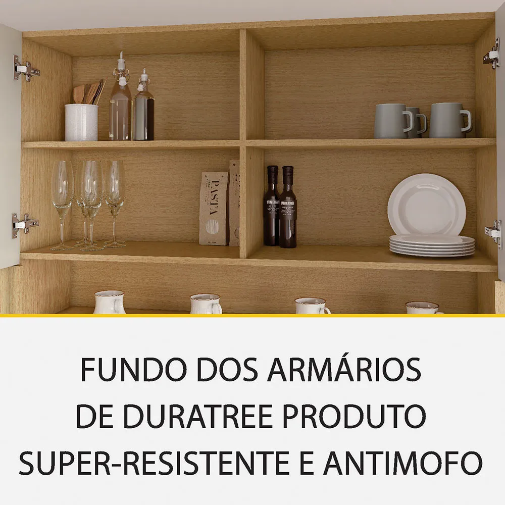 - MDF das portas: 18 mm (aéreos) e 15 mm (balcões)