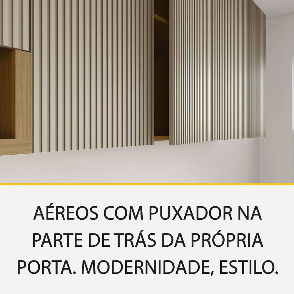 ✅ Design clean com puxadores embutidos e acabamento ripado canelado