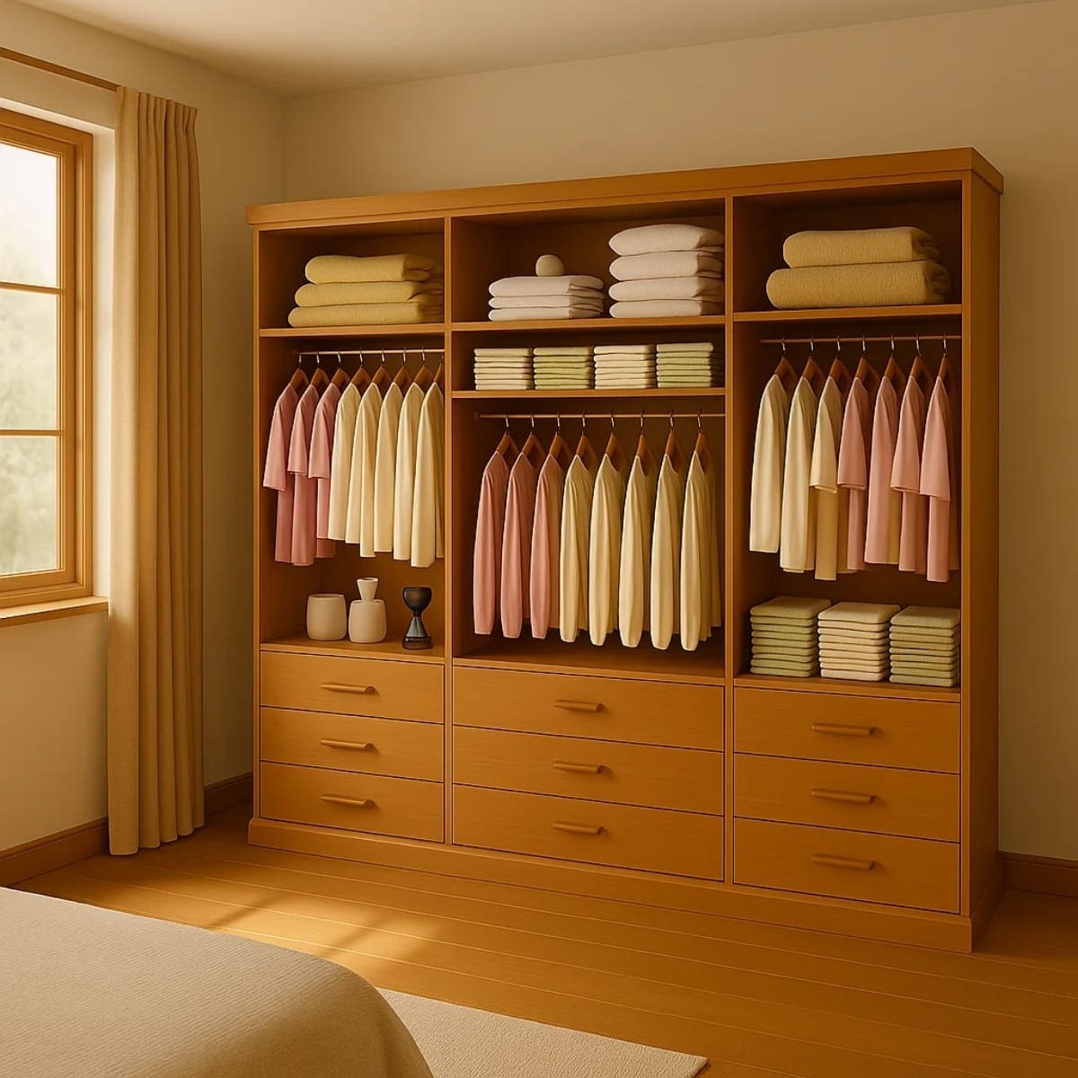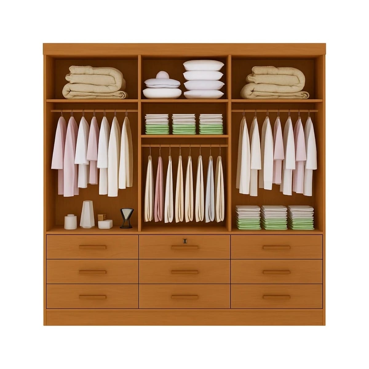 O Guarda-Roupa Tucson foi projetado para quem busca organização, praticidade e sofisticação em um único móvel. Com 3 portas de correr e 9 gavetas espaçosas — sendo 1 com chave — ele proporciona excelente aproveitamento interno, ideal para roupas, acessórios e objetos pessoais.