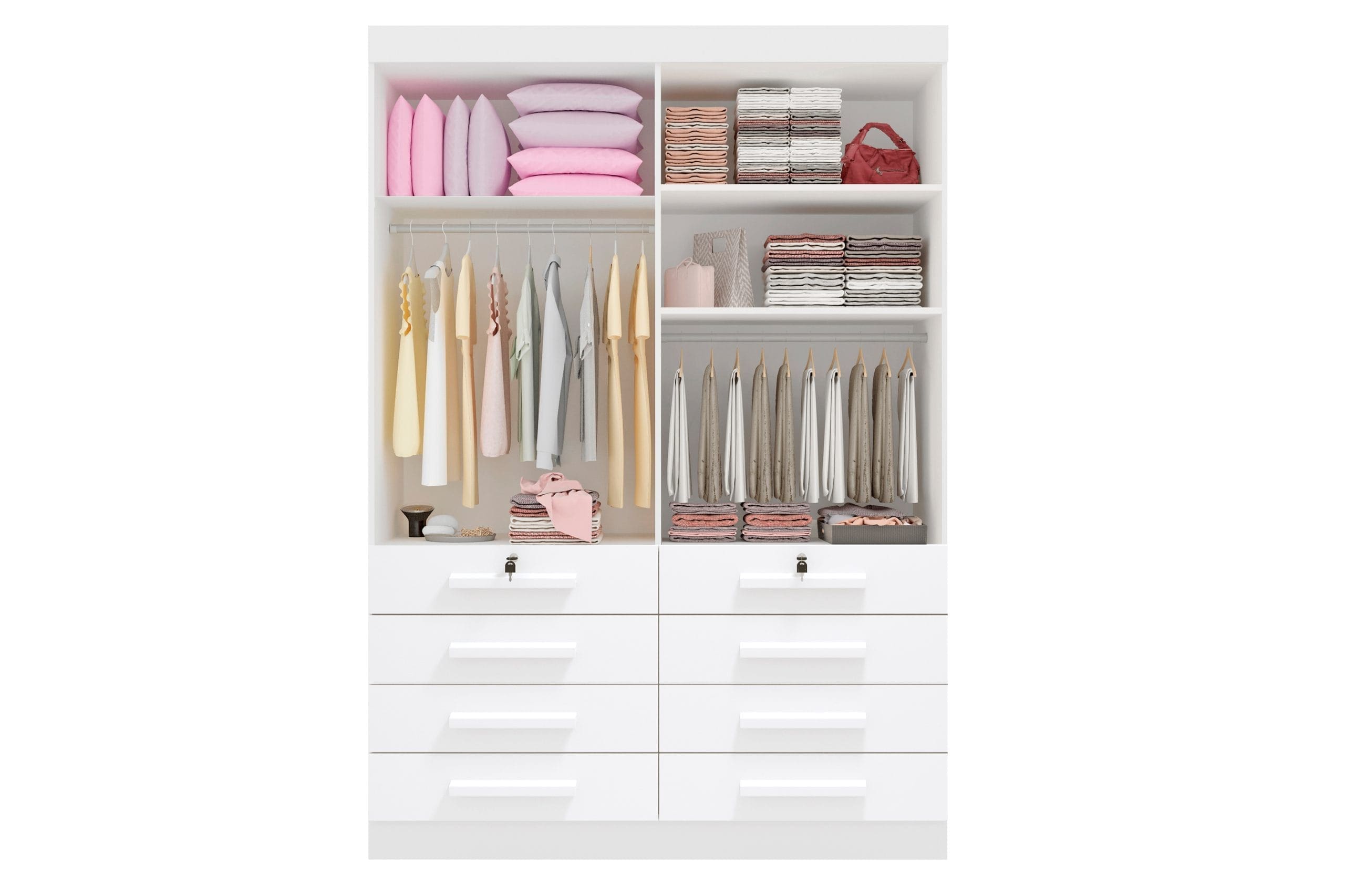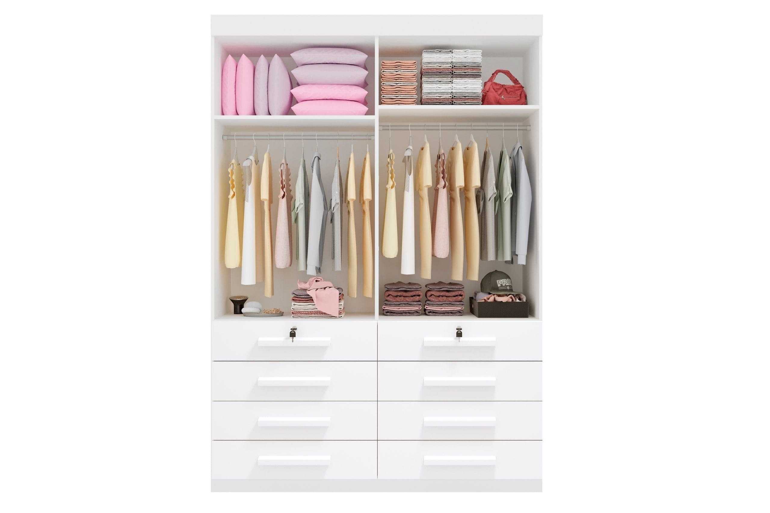 • 4 portas amplas, ideais para pendurar roupas e organizar o espaço interno