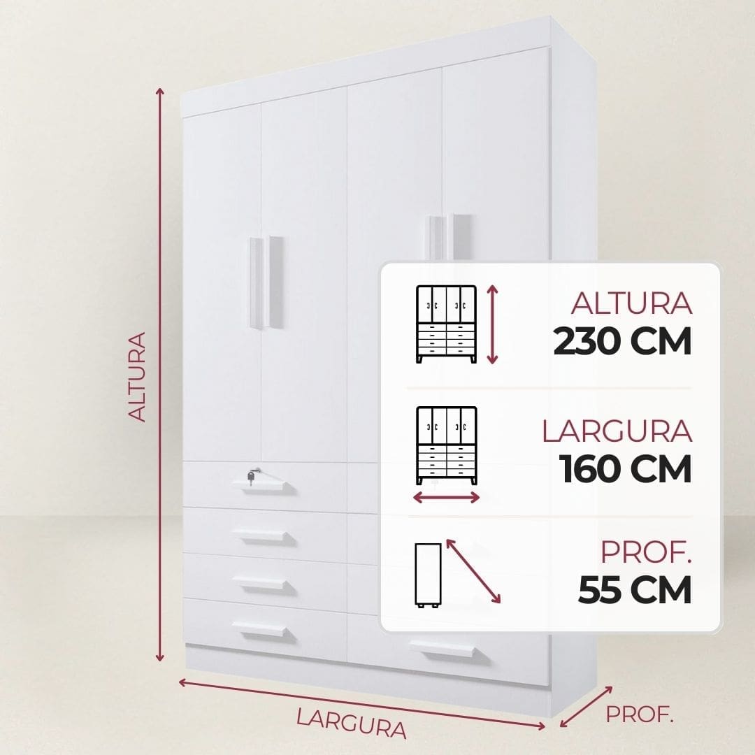 ✨ Guarda-Roupa Austin 4 Portas e 8 Gavetas – 1,60 m: