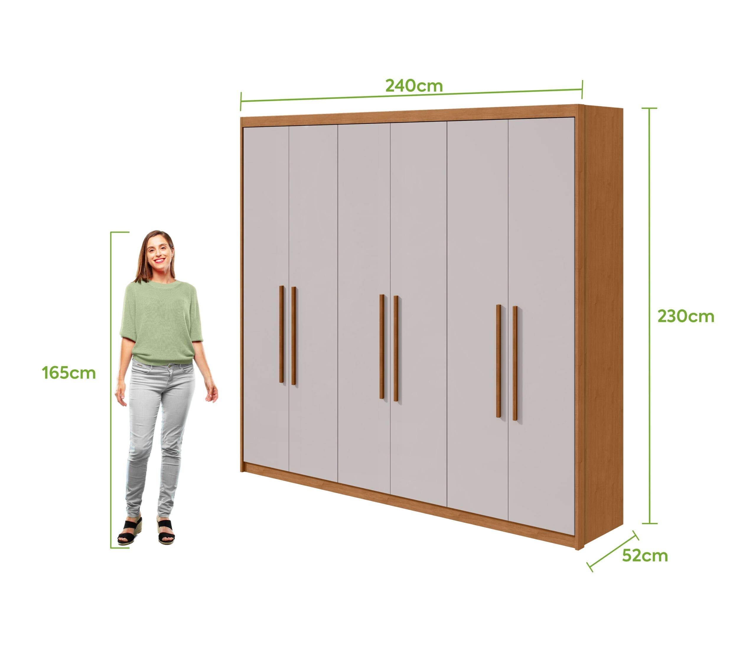 Guarda-Roupa 6 Portas – 5 Gavetas – 2,44 m – Interno com 11 Nichos e Espaço para Sapatos
