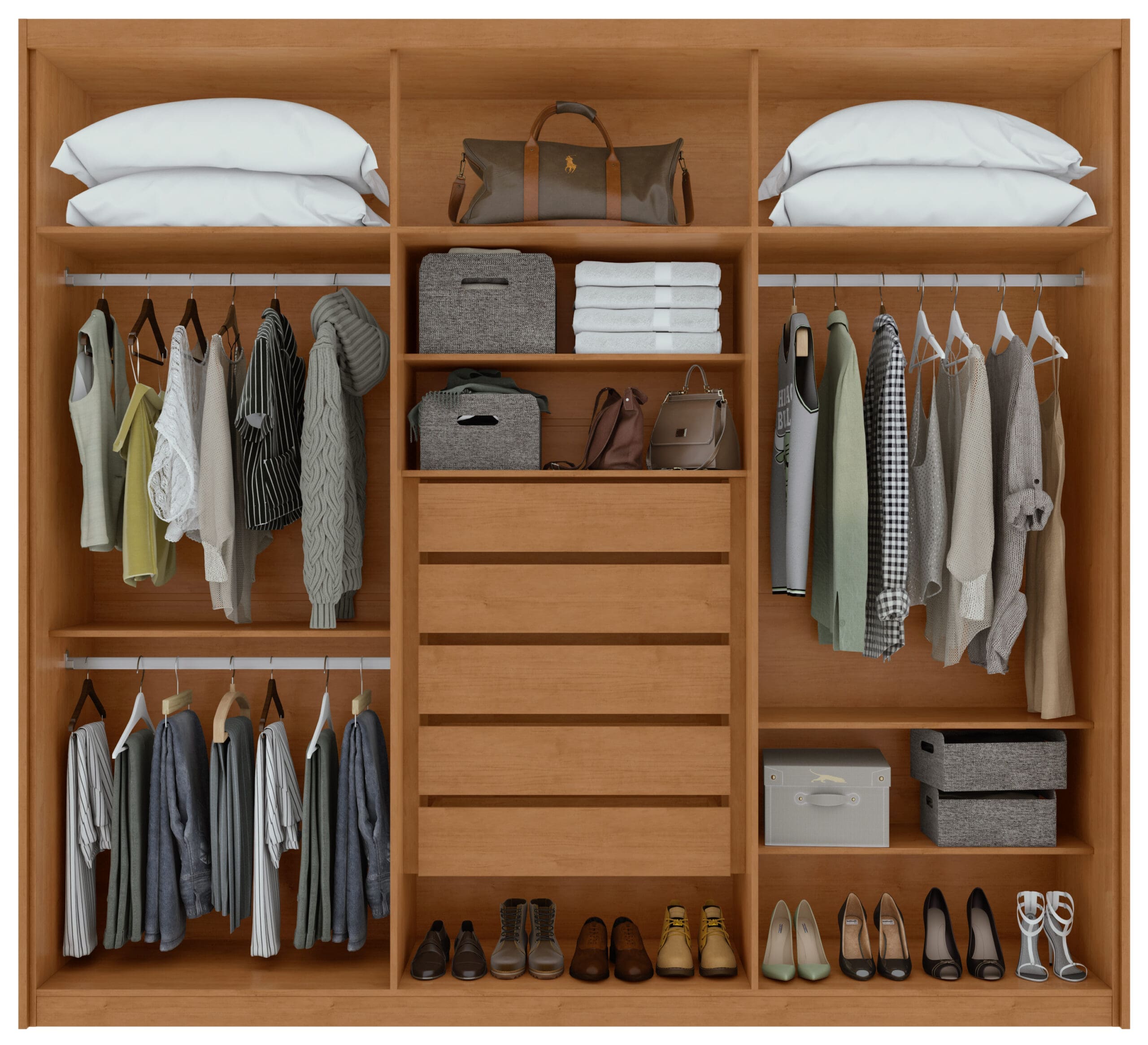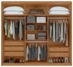 Seu interior é dividido de forma inteligente com 11 nichos, otimizando a organização de roupas, calçados e acessórios. As 5 gavetas com corrediças telescópicas proporcionam abertura total e fluidez no manuseio, com distanciadores em MDF para melhor acabamento interno.
