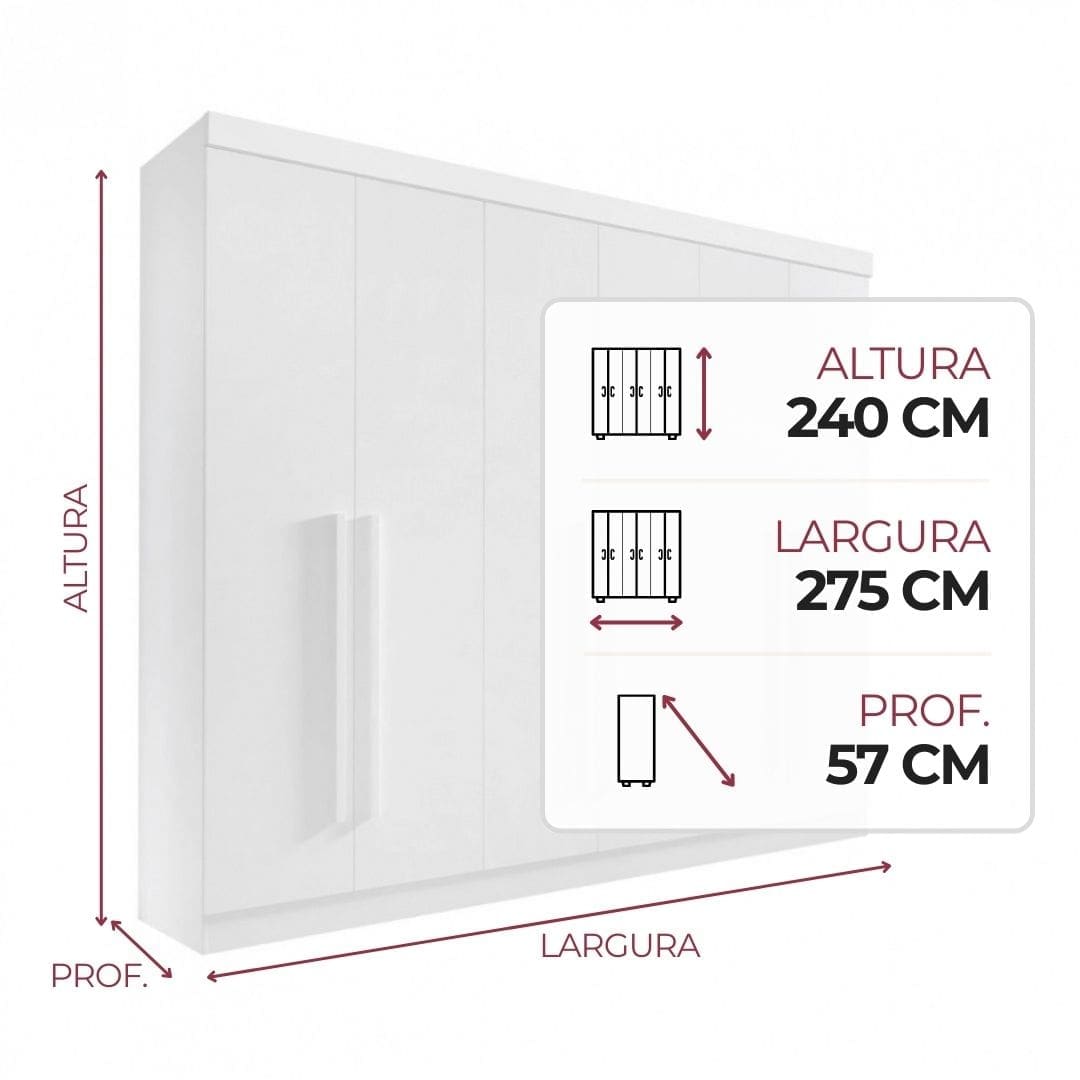 Guarda-Roupa Casal Da Vinci Plus - 6 Portas, 6 Gavetas, 100% MDF - 2.75m - Branco