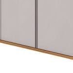 O sistema de puxadores com cava embutida valoriza o acabamento minimalista, mantendo a elegância sem comprometer a funcionalidade. As costas inteiriças aumentam a estabilidade da estrutura, reforçando a durabilidade do móvel.