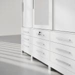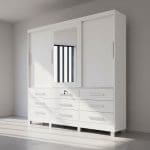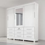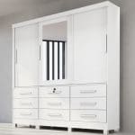 Com 3 portas de correr, sendo uma com espelho, e 9 gavetas internas (1 com chave), o Athenas garante armazenamento inteligente para roupas, acessórios e calçados. Seus cabideiros em alumínio oferecem resistência, enquanto as corrediças telescópicas proporcionam deslizamento suave das gavetas.