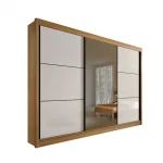 Internamente, o modelo apresenta excelente divisão com gavetas amplas de abertura total e suporte metálico para cabides. As roldanas com mola proporcionam deslizamento suave das portas, enquanto o espelho com película de segurança agrega funcionalidade e um visual moderno ao móvel.