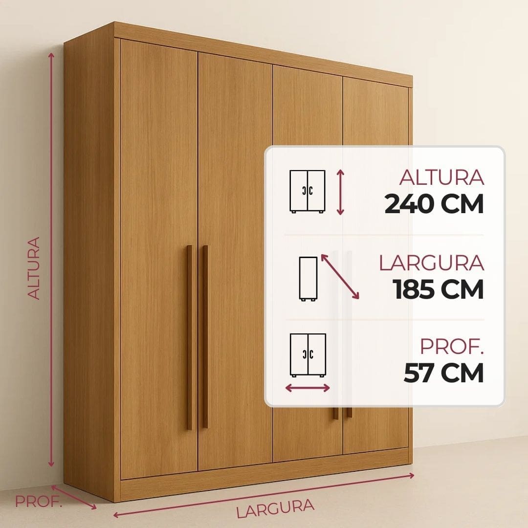 Perfeito para dormitórios modernos, ele oferece excelente aproveitamento vertical com 4 portas amplas e 3 gavetas espaçosas, ideais para roupas, calçados e acessórios.