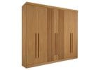 São 6 portas amplas, com puxadores de madeira, que revelam um interior bem distribuído: 6 gavetas com puxadores e corrediças telescópicas de 40 cm, cabideiros metálicos, nichos e prateleiras bem posicionadas. As gavetas têm abertura total e profundidade de 40 cm, ideais para roupas dobradas e acessórios.