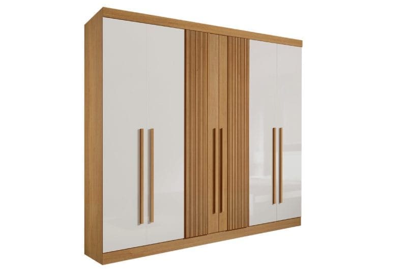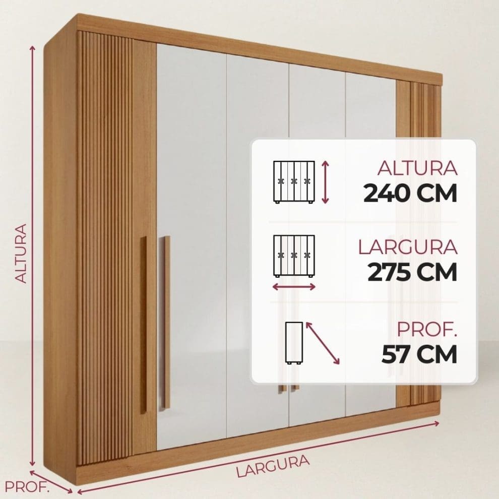 Guarda-Roupa Ripado Detroit – 6 Portas – 6 Gavetas – 100% MDF – 2,75 m – Altura com Pé 2,50 m