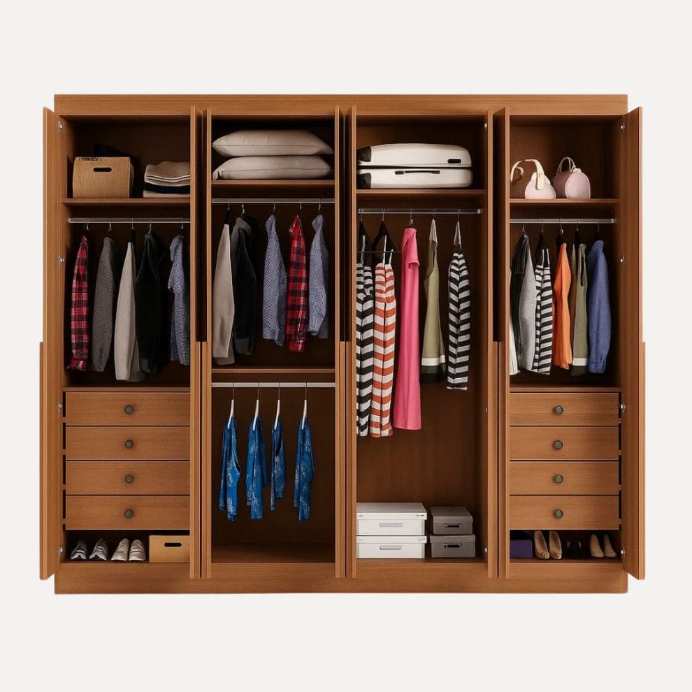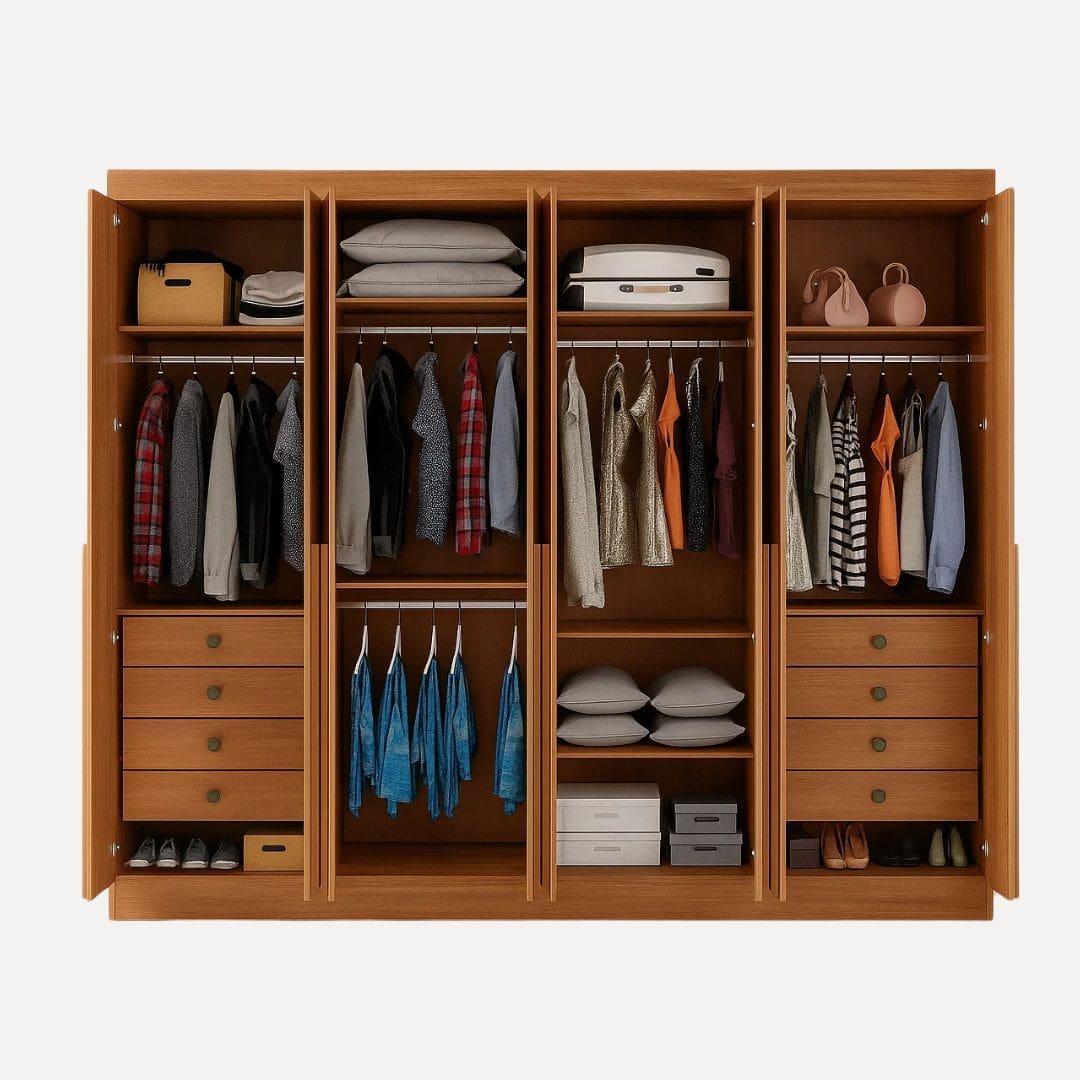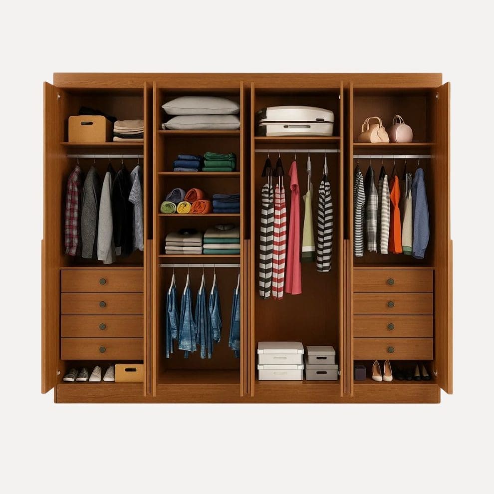 - Profundidade das gavetas: 40 cm – ideal para roupas volumosas