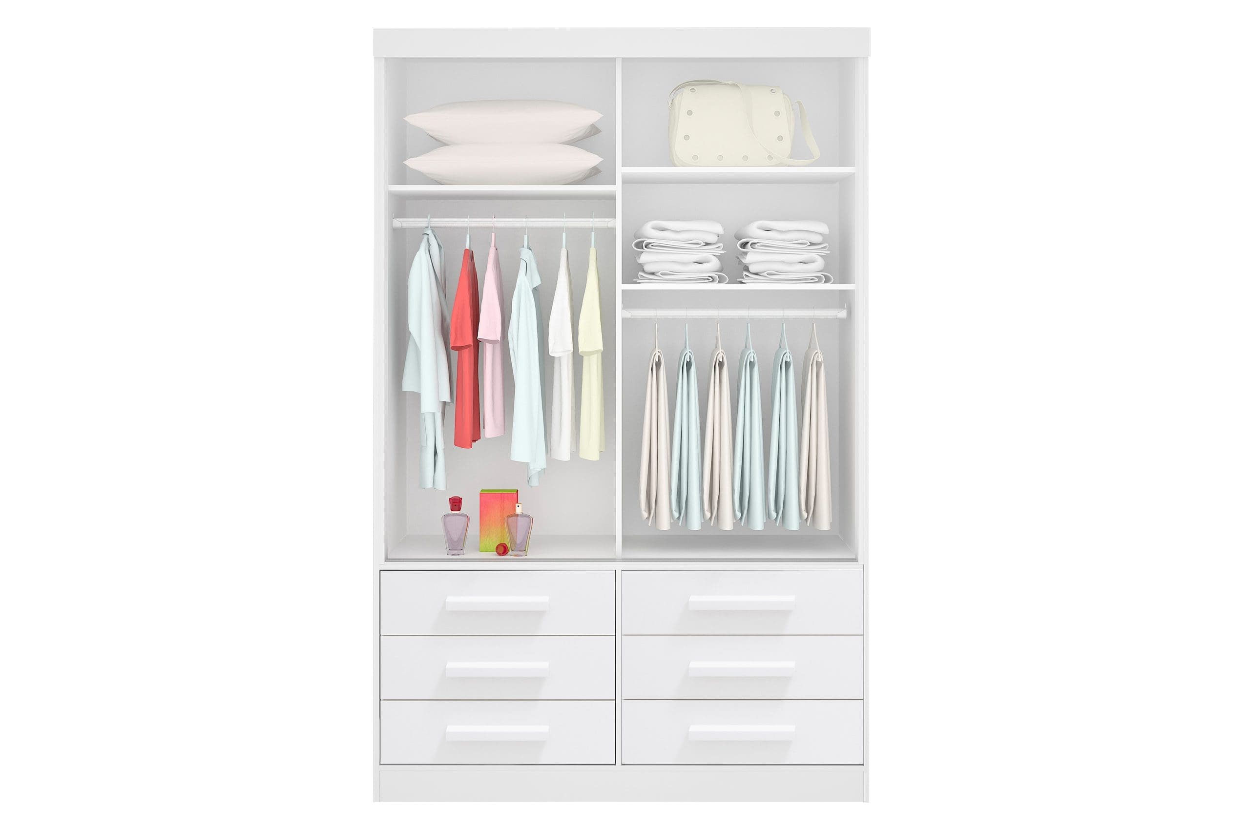 As duas portas de correr contam com trilho antiqueda, garantindo movimento suave e seguro no uso diário. Suas 6 gavetas amplas, equipadas com corrediças telescópicas de 40 cm, oferecem abertura total e excelente capacidade de armazenamento.
