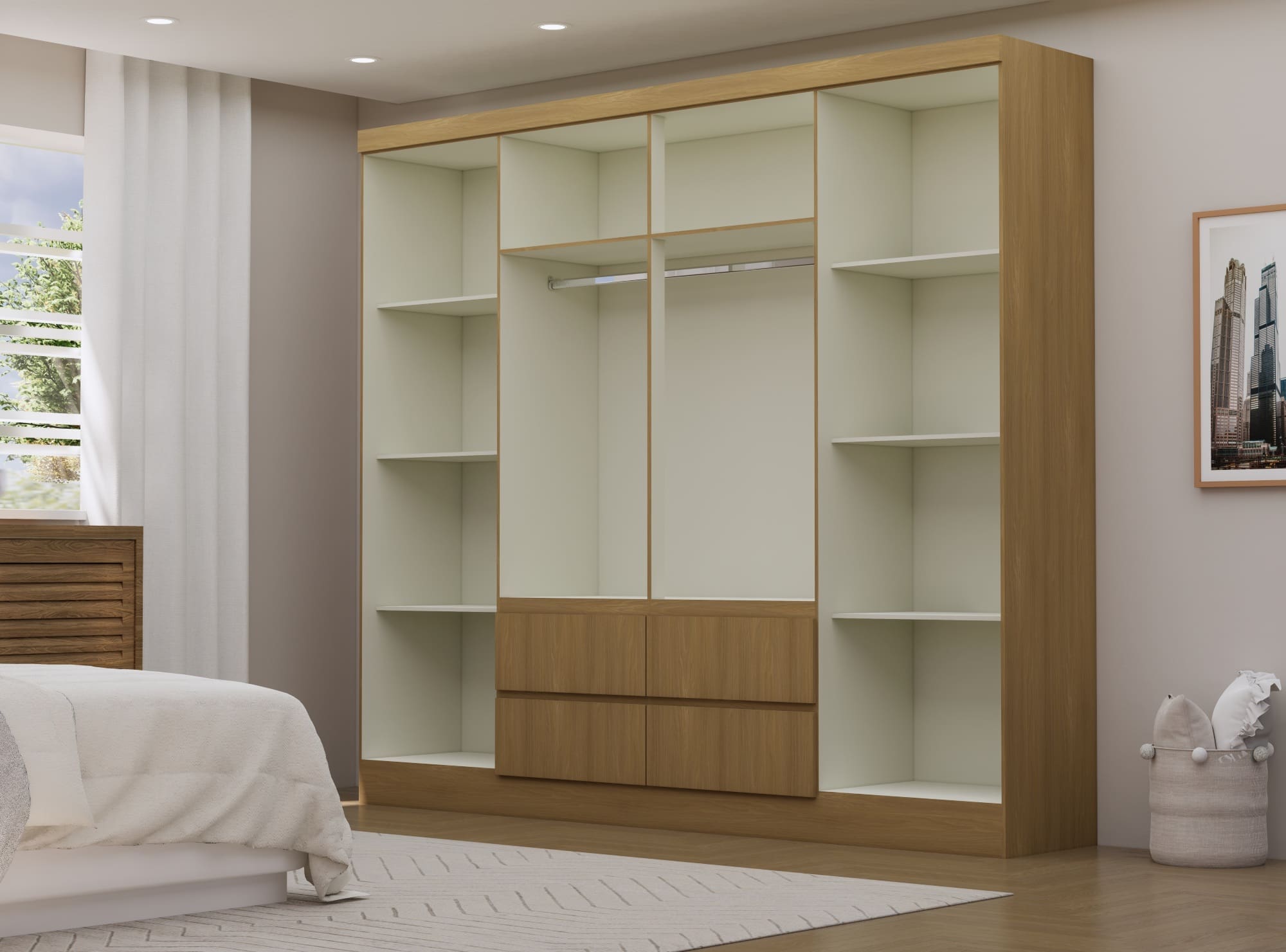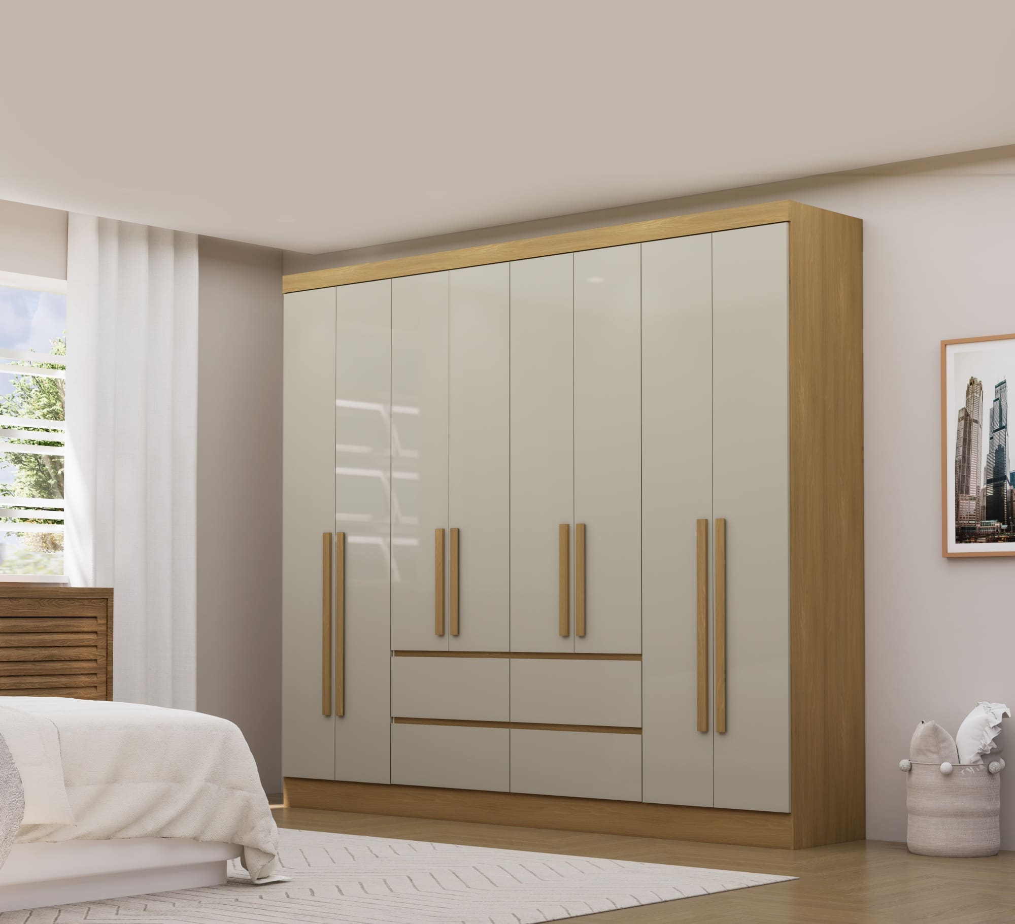 - 8 portas e 4 gavetas: amplo espaço para roupas, acessórios e organização diária