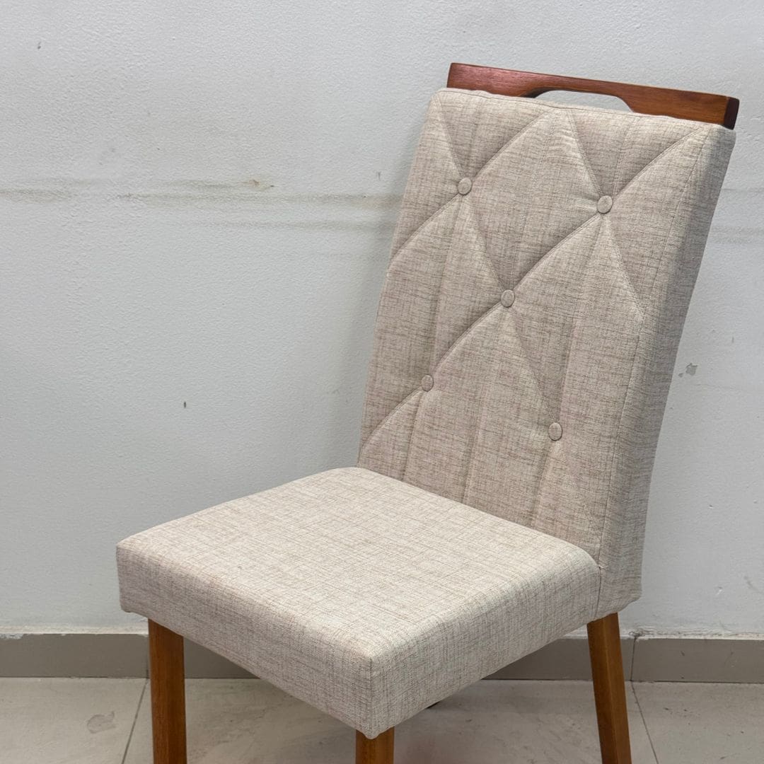 O Kit com 2 Cadeiras Imperatriz é perfeito para quem deseja compor um ambiente elegante e acolhedor. Com estrutura em madeira maciça e acabamento em pintura UV, alia durabilidade, resistência e beleza. O assento estofado em espuma D28 com revestimento em linho bege garante o equilíbrio entre firmeza e maciez, proporcionando conforto em todas as refeições, ideal para a sua cadeira de jantar.