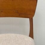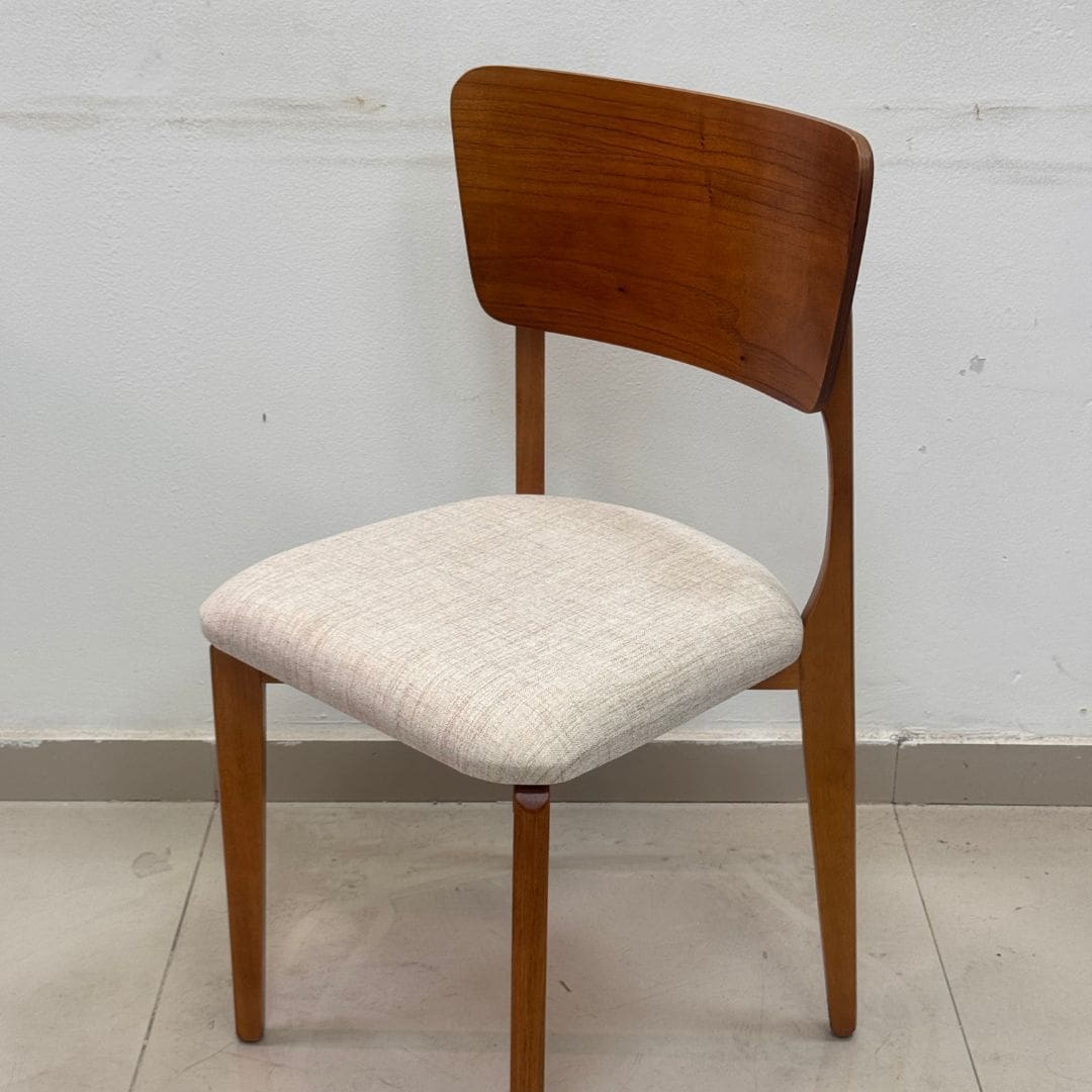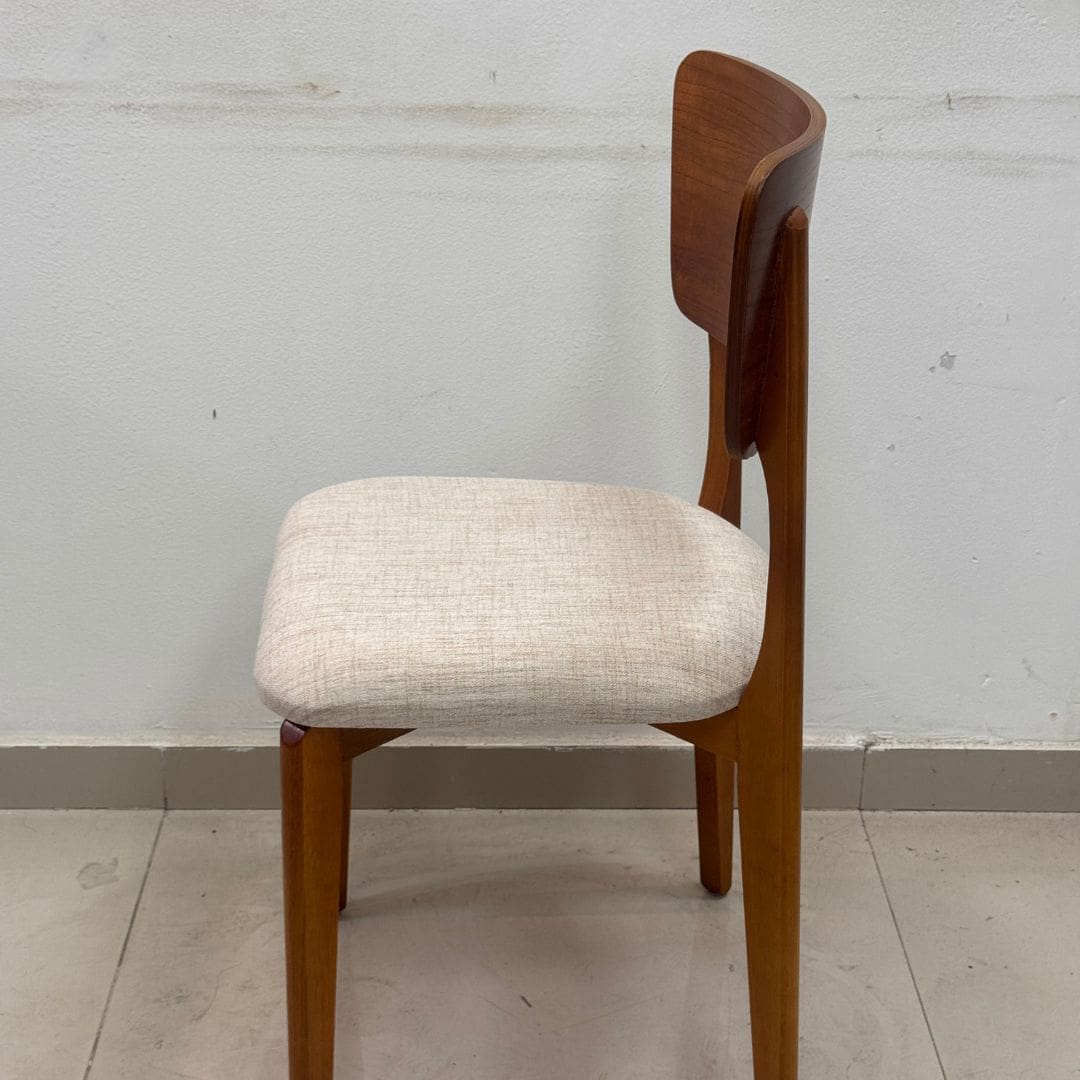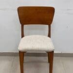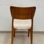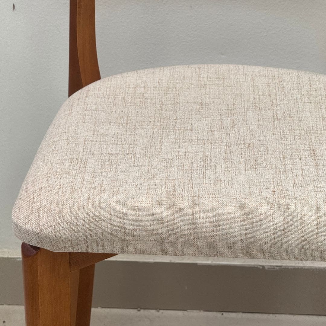 O assento estofado em espuma D28, revestido em linho bege 2510, garante maciez e resistência para o uso diário. A estrutura em madeira maciça com pintura UV oferece durabilidade, charme natural e fácil manutenção, tornando-a perfeita para uma cadeira de jantar.