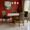 Nossas mesas são projetadas para se adaptarem perfeitamente ao seu estilo e necessidades individuais. Uma das características exclusivas das nossas mesas é que elas podem ser combinadas com cadeiras diferentes, permitindo que você crie uma combinação única e personalizada para a sua sala de jantar.