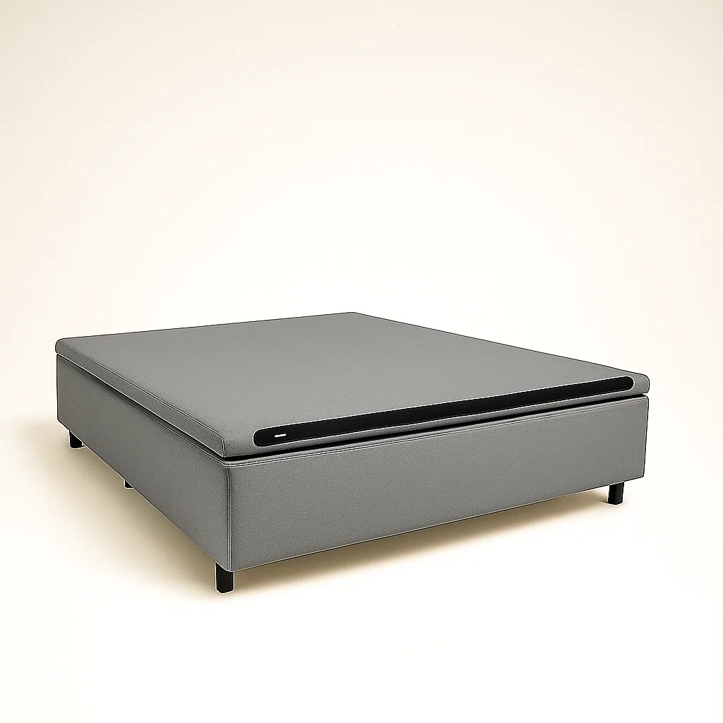 Fabricado em madeira de reflorestamento tratada contra fungos e cupins, conta com revestimento em tecido sintético 100% poliéster, pés em eucalipto com pintura eletrostática e puxador discreto revestido. O sistema Encaixe Plus assegura melhor fixação do colchão, proporcionando mais estabilidade e conforto.