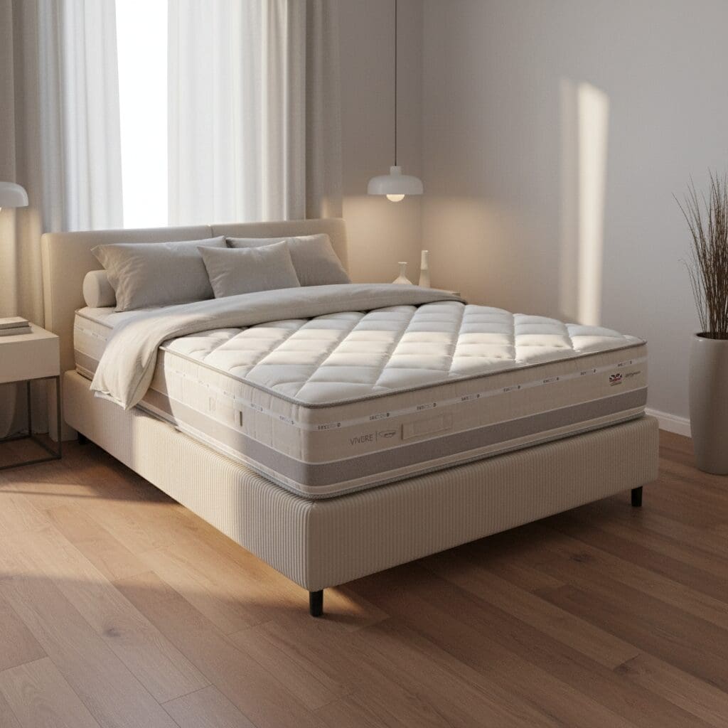 Conforto inteligente, sustentabilidade e tecnologia para noites revigorantes. O Colchão Vegas Vivere Casal combina o avançado sistema de molas Maxspring (185 molas/m²) com camadas de espumas técnicas e a exclusiva malha com óleo de coco, que possui ação antimicrobiana, antioxidante e hidratante.