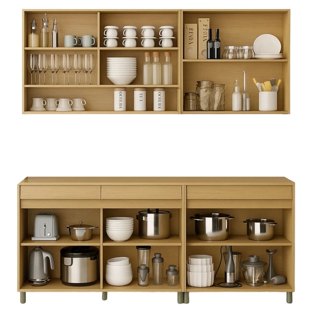 Composta por módulos independentes, permite composições personalizadas conforme o seu espaço, oferecendo flexibilidade, estética moderna e muita capacidade de armazenamento.