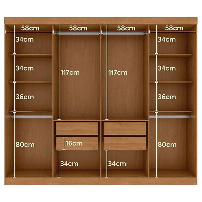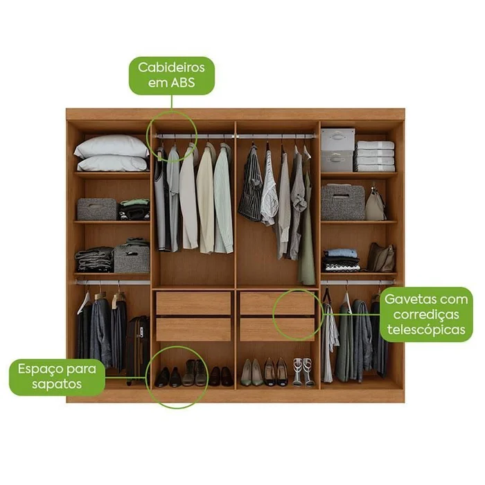 - Divisão interna inteligente: 16 nichos + maleiro sem divisória para organizar roupas, acessórios e sapatos com facilidade.