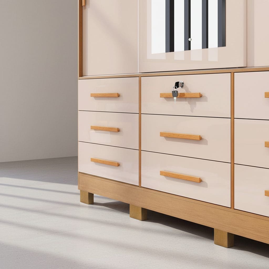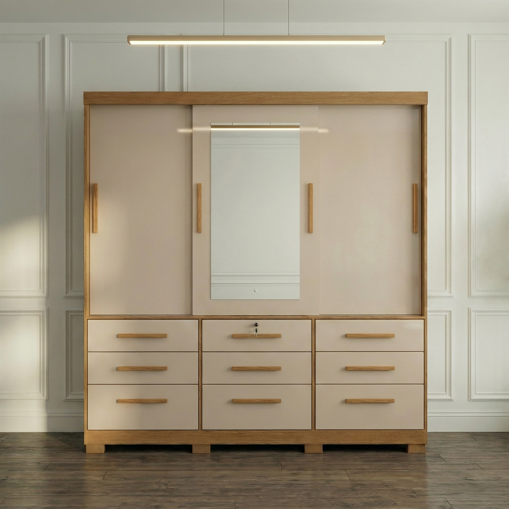 Com 3 portas de correr, sendo uma com espelho, e 9 gavetas internas (1 com chave), o Athenas garante armazenamento inteligente para roupas, acessórios e calçados. Seus cabideiros em alumínio oferecem resistência, enquanto as corrediças telescópicas proporcionam deslizamento suave das gavetas.