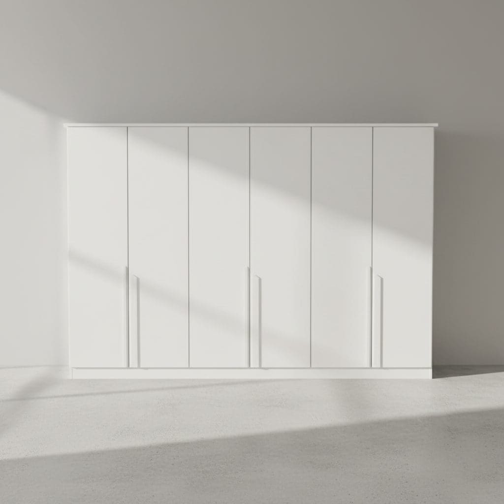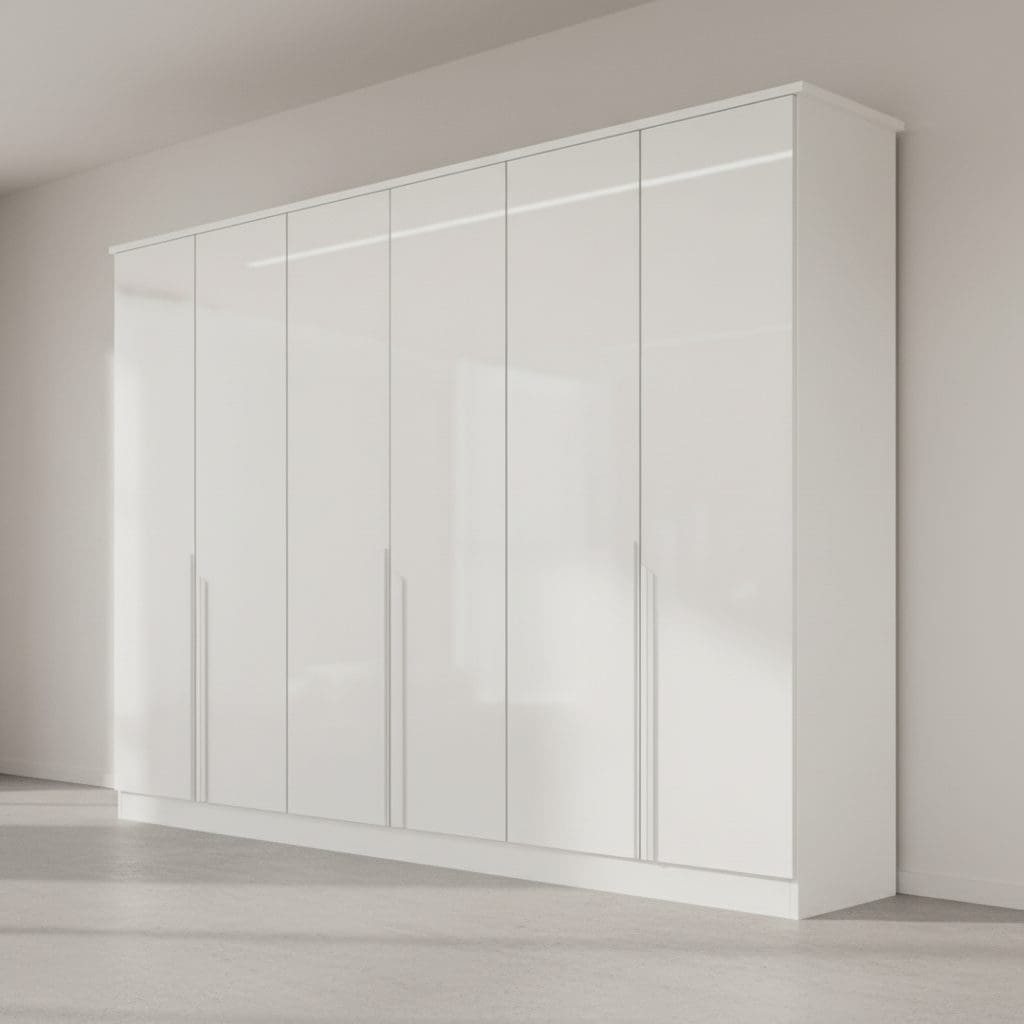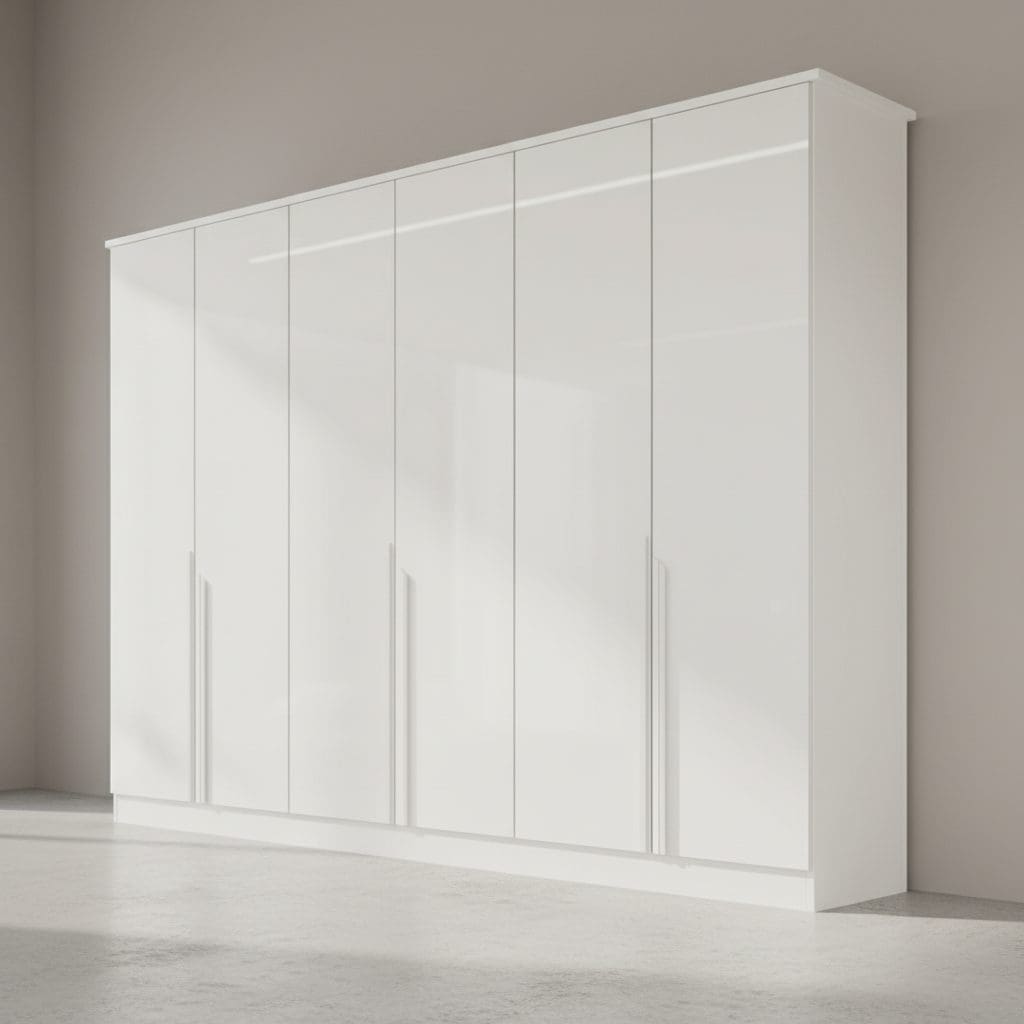 Com 6 portas com dobradiças metálicas e 6 gavetas com corrediças telescópicas, o modelo garante praticidade e fácil acesso aos itens do dia a dia. Além disso, dispõe de 6 prateleiras bem distribuídas, espaço para roupas longas, cabideiros em alumínio e puxadores em madeira, trazendo elegância e funcionalidade em cada detalhe.