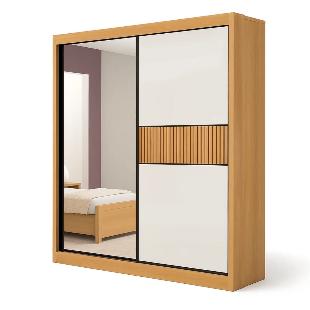 Com estrutura 100% MDF, o Houston oferece alta resistência e durabilidade, garantindo um móvel robusto e com acabamento premium. Suas 2 portas deslizantes com roldanas com molas proporcionam abertura leve e silenciosa, otimizando o espaço do quarto.