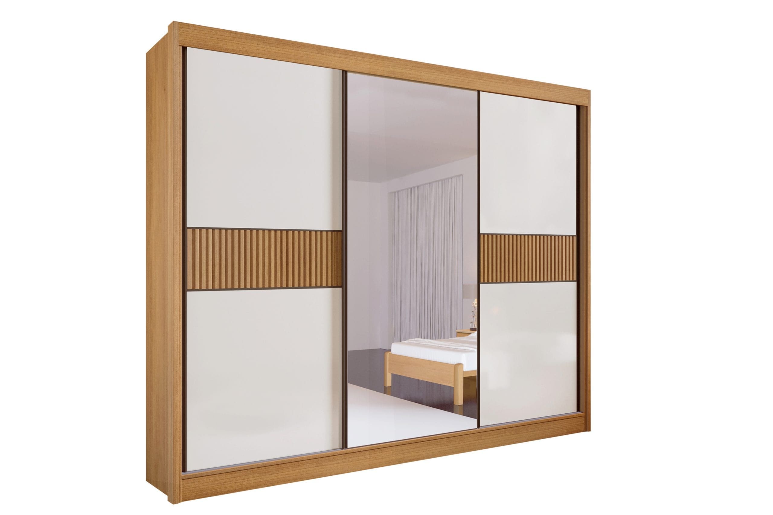 Guarda-Roupa Casal 3 Portas Las Vegas - 6 Gavetas - 100% MDF - Cinamomo com Off White ou Cinamomo (Flex) - 2.73m - Com Espelho