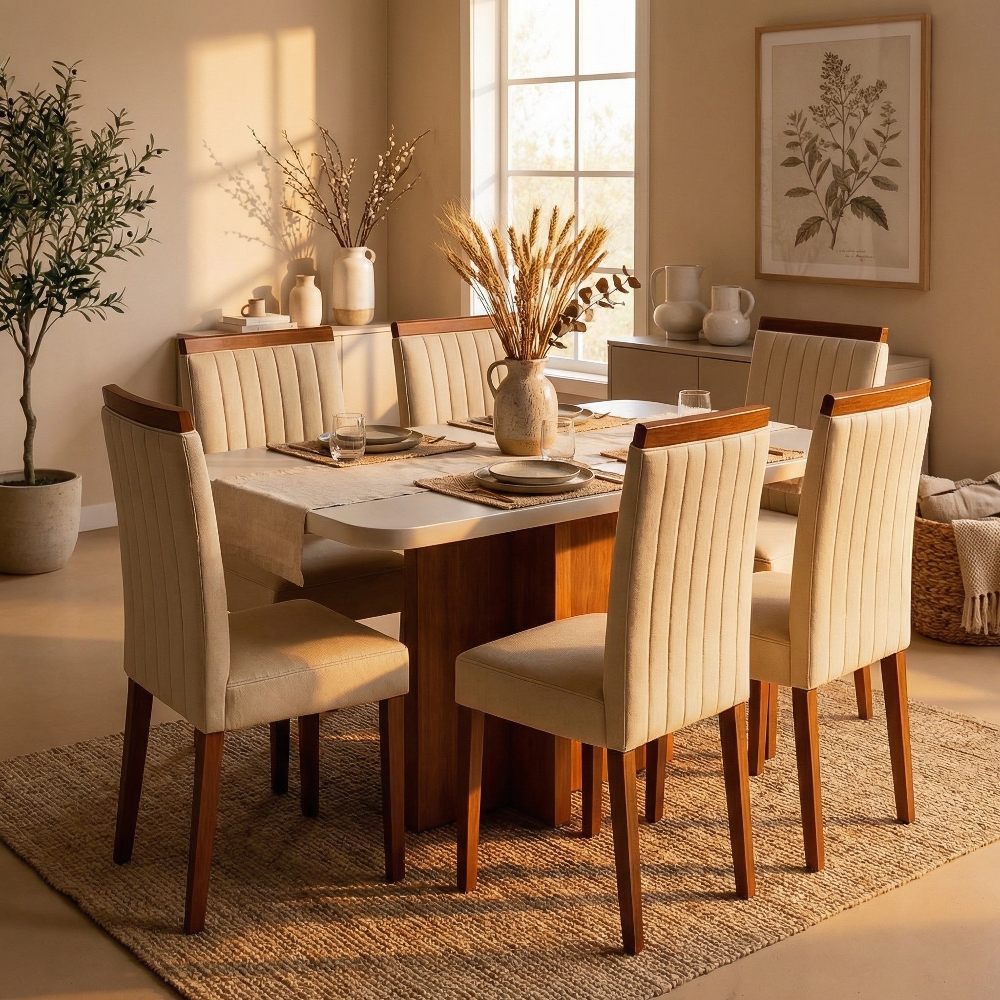 - ✅ Conforto garantido – cadeiras estofadas em Bouclé