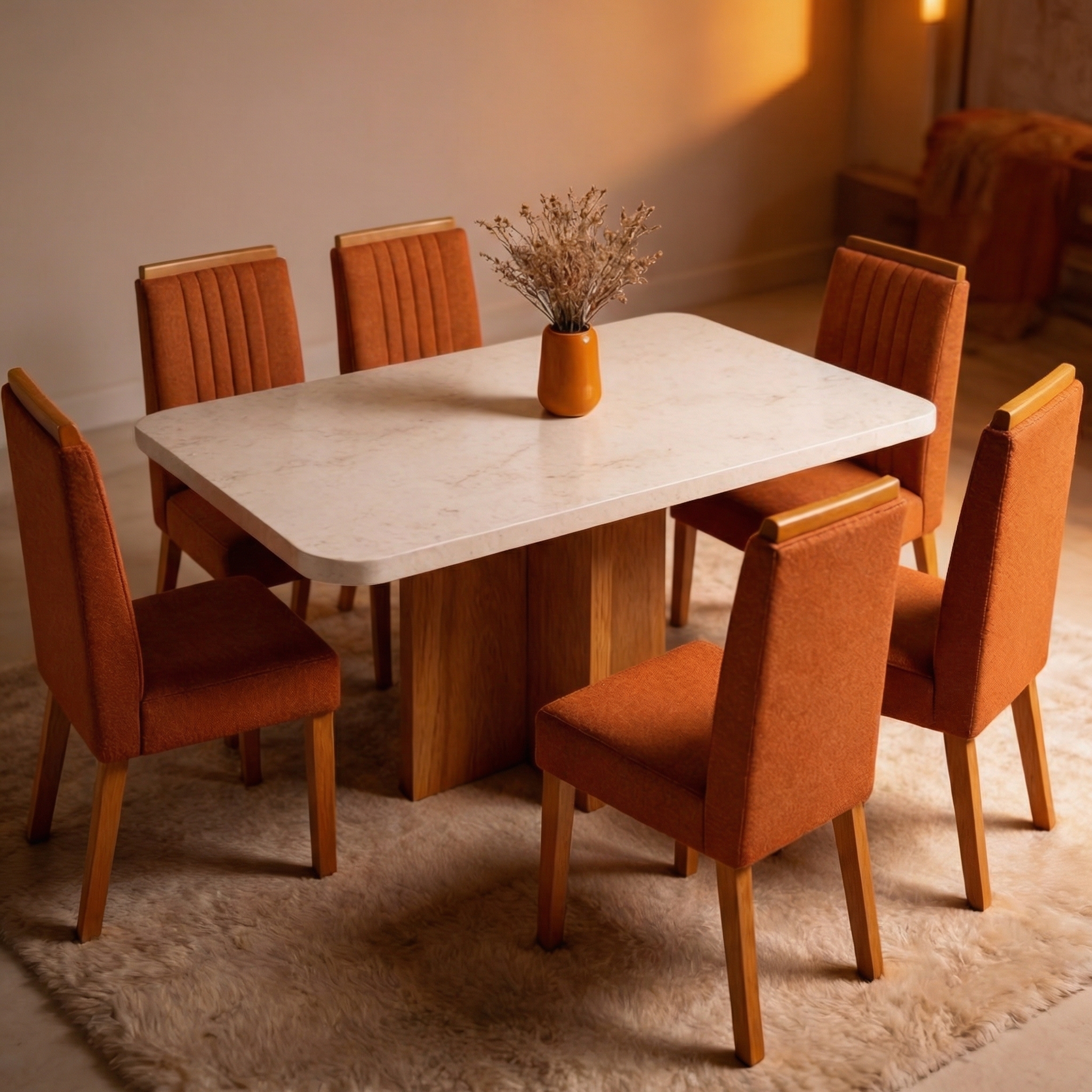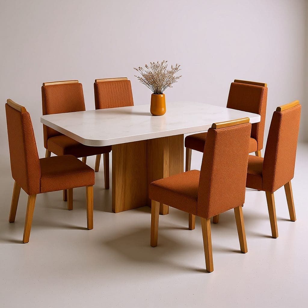 Mesa de jantar marmorizada Dallas 1.80mcom 6 cadeiras de Boucle Terracota
