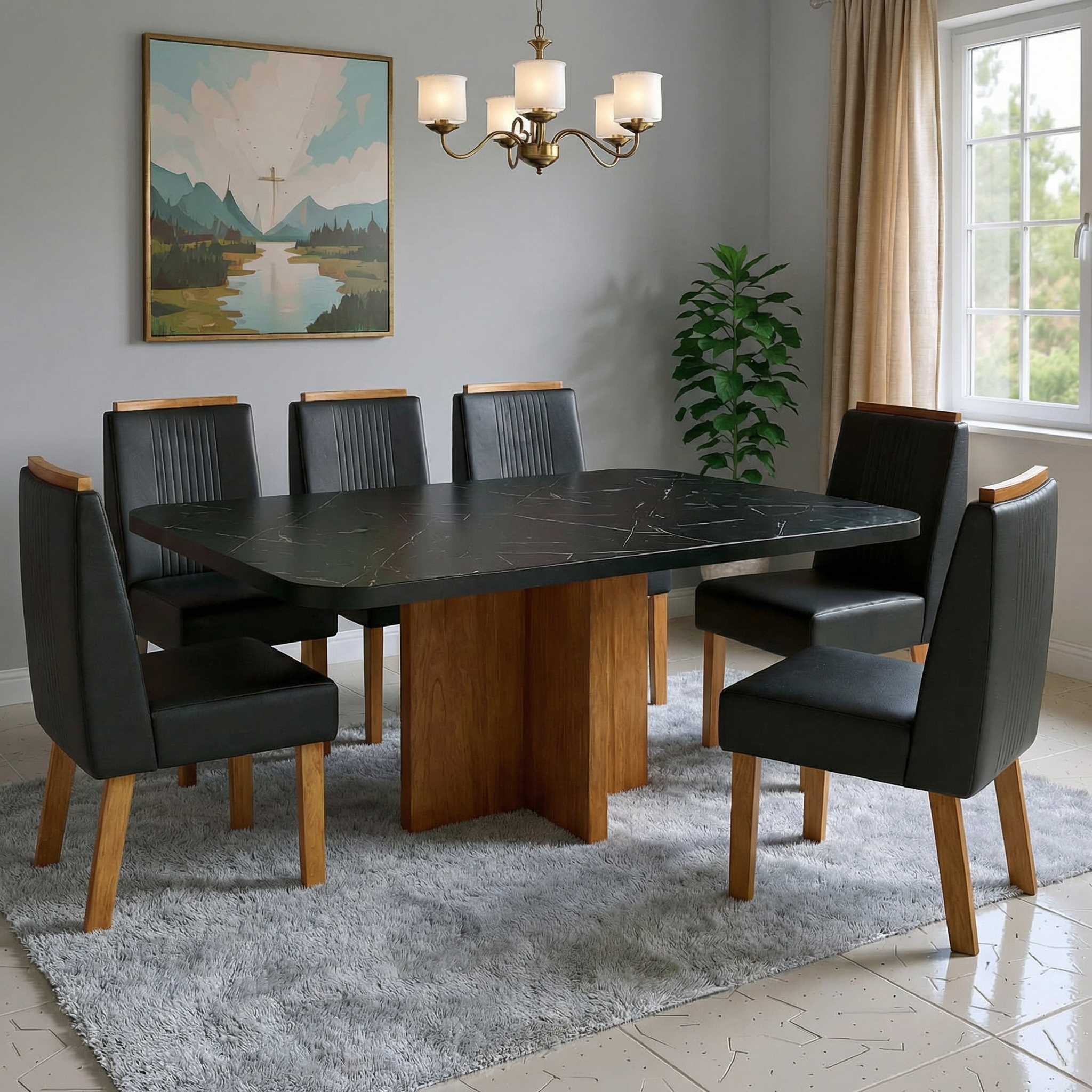 - ✅ 6 cadeiras de couro preto elegantes