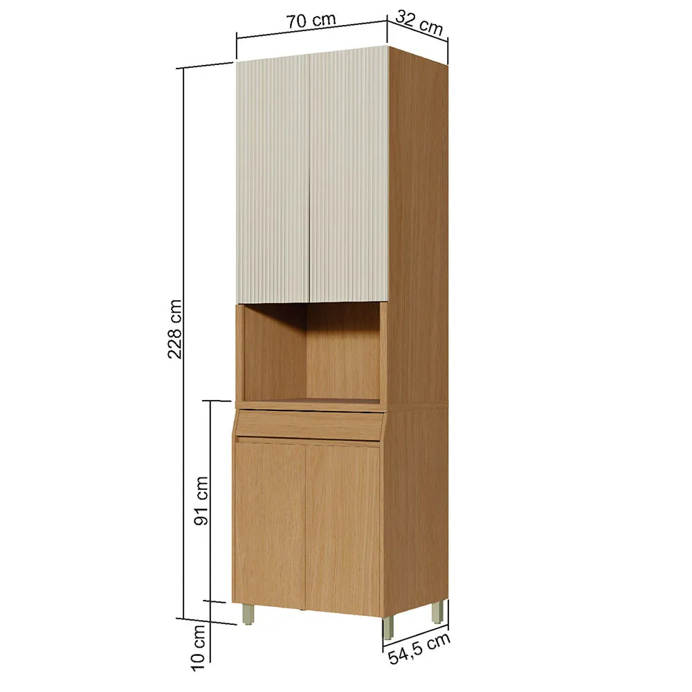 O Paneleiro Simone Mendes 70 cm combina armazenamento inteligente e design sofisticado em um único móvel. Com 4 portas ripadas Greige em estilo canelado e caixaria em Carvalho, ele traz um visual elegante e contemporâneo para cozinhas planejadas de alto padrão.