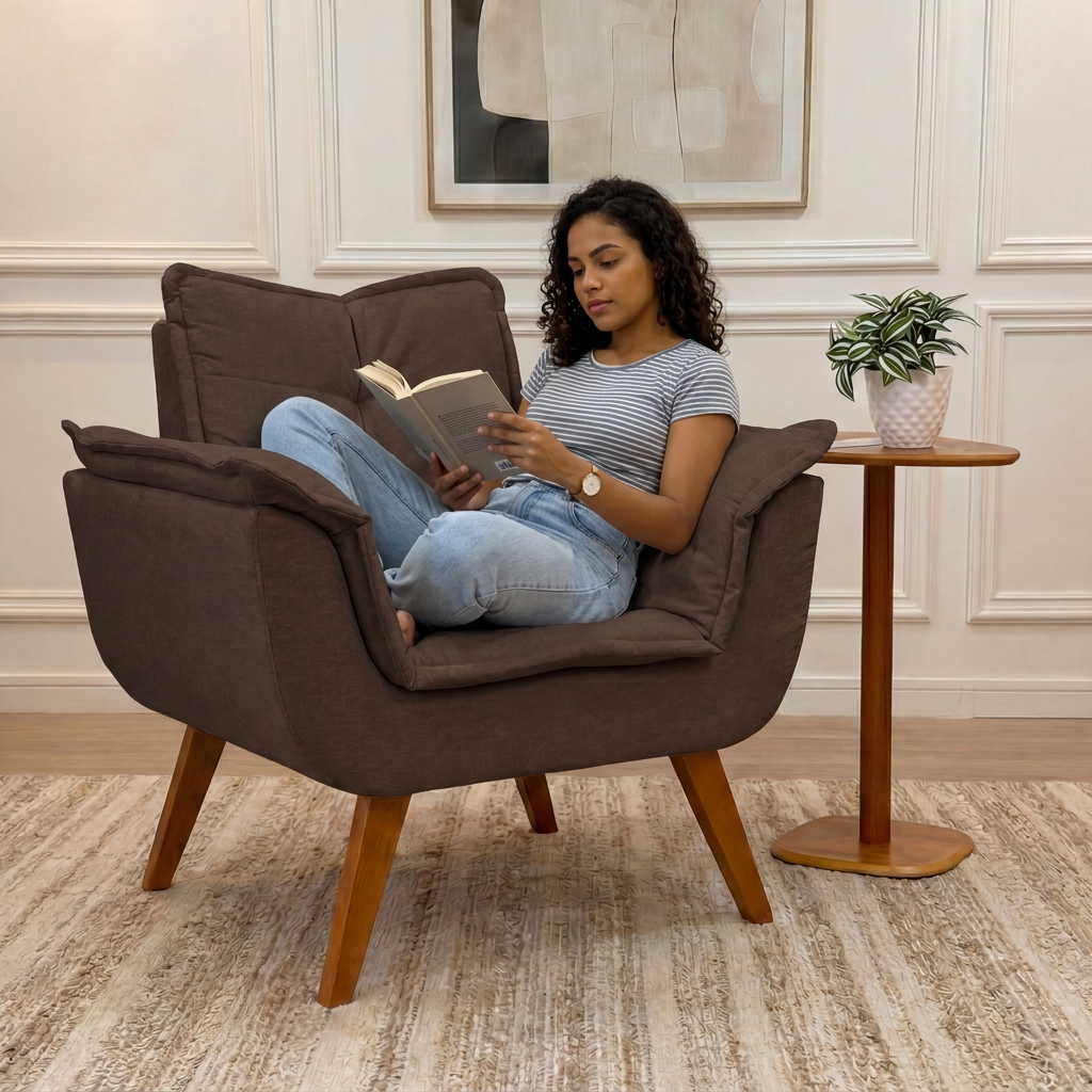 - Altura do assento (0,45 m): ideal para leitura, descanso ou recepção