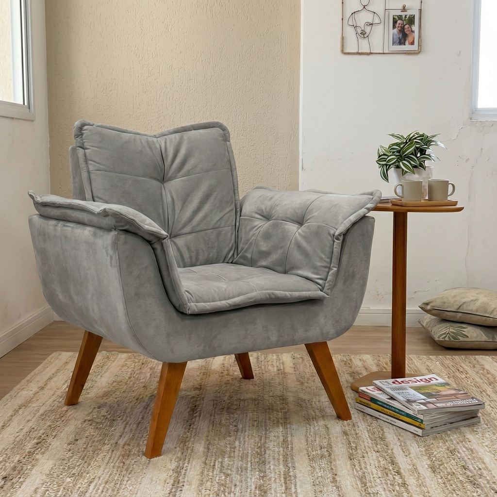 A Poltrona Opala com Braços é a combinação perfeita entre sofisticação e conforto. Seu design contemporâneo e acolhedor se adapta a diversos estilos de decoração — ideal para salas de estar, quartos, escritórios ou recepções.