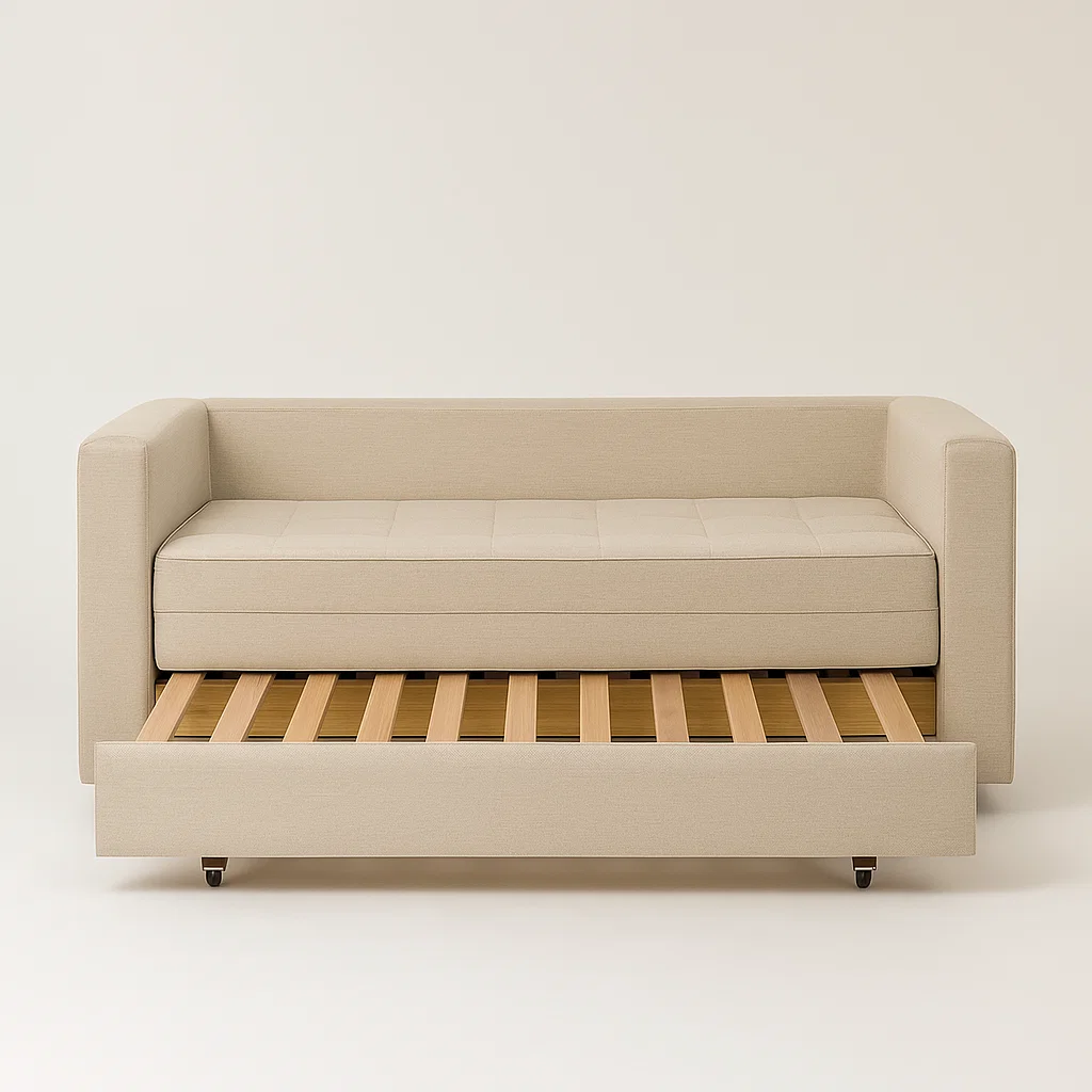 Perfeito para ambientes pequenos, o Sofá-Cama Morfeo combina estilo e versatilidade, adaptando-se facilmente a diferentes espaços, como salas, quartos de hóspedes ou escritórios.