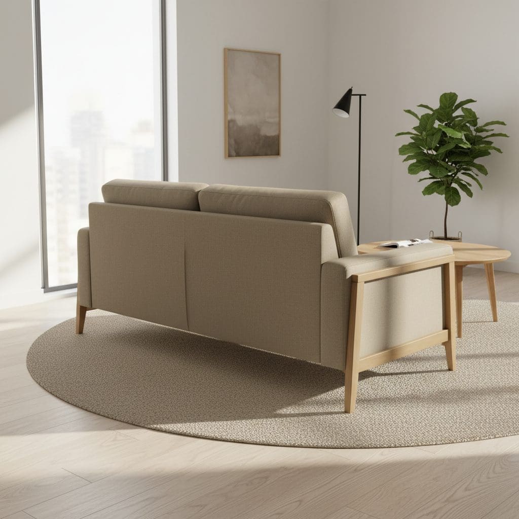 - Encosto em almofadas soltas que garantem conforto moldável
