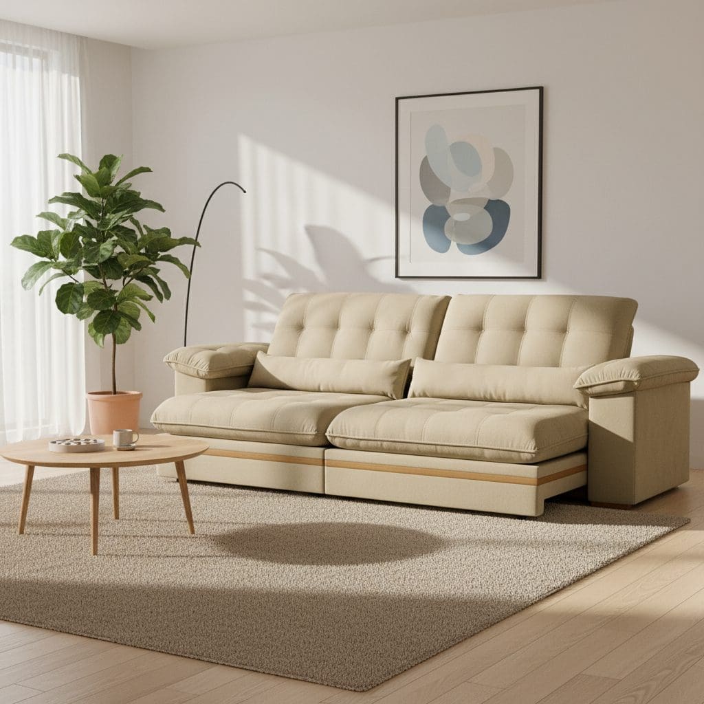 Esse modelo é um verdadeiro sofá retrátil, oferecendo praticidade e conforto em qualquer ambiente.