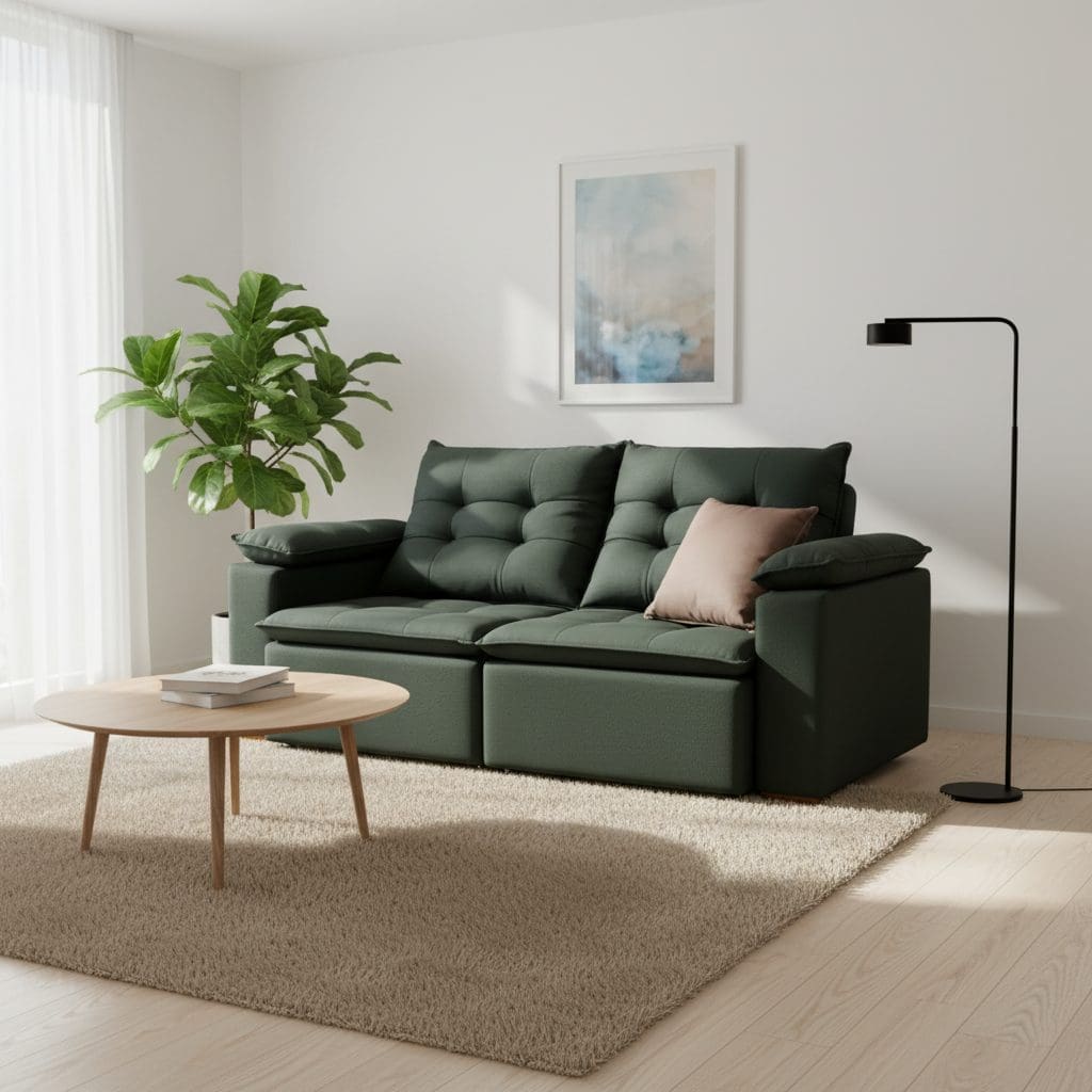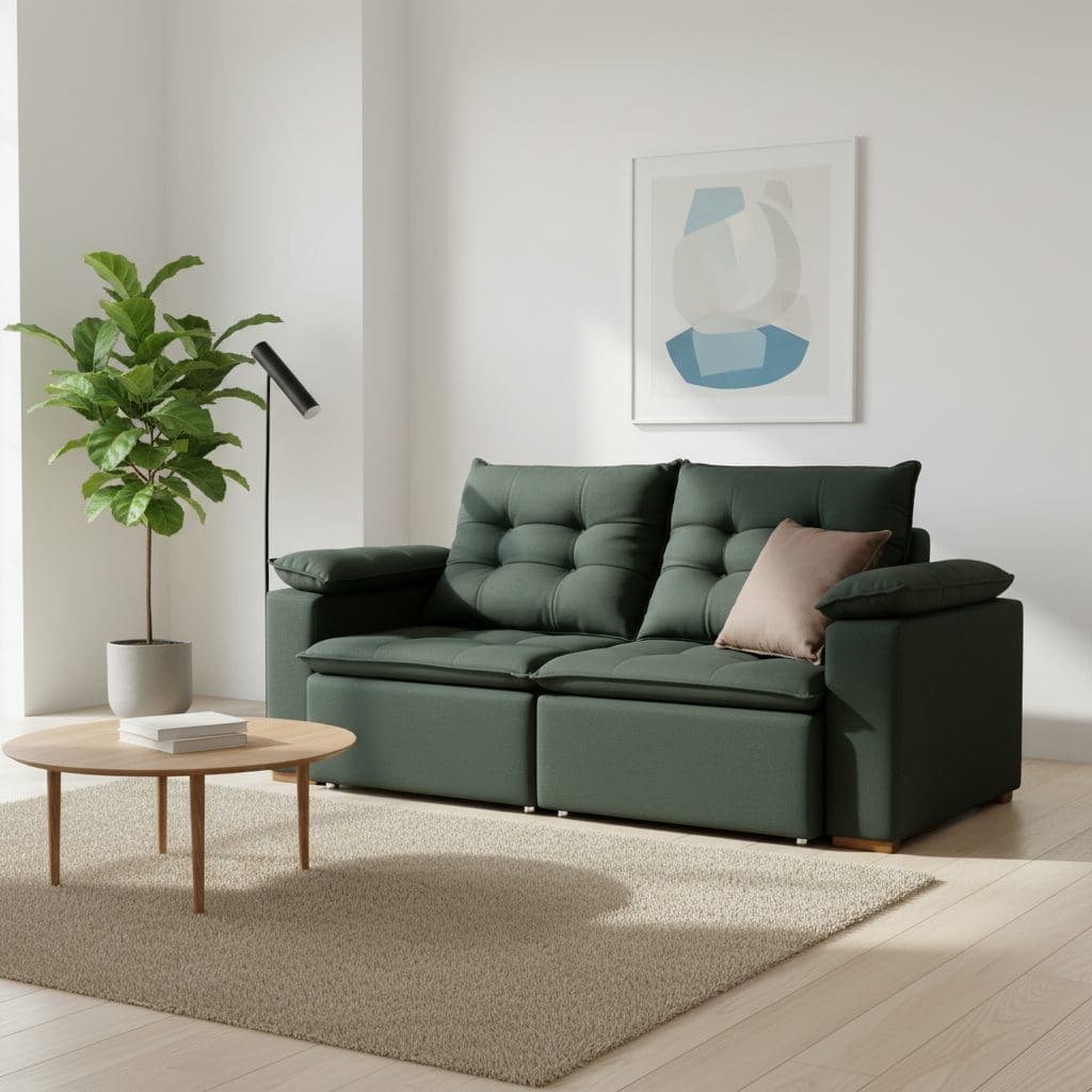 Este sofá de 3 lugares combina conforto, resistência e beleza para transformar a sua sala de estar. Seu design foi pensado para oferecer o máximo de aconchego, utilizando materiais de alta qualidade e estrutura robusta.