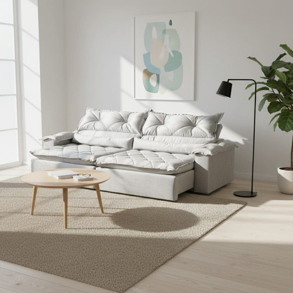 Nossos sofás retráteis e reclináveis incorporam criatividade e praticidade, características que não apenas elevam o valor estético desses produtos, mas também os transformam em exemplares de conforto para os usuários, indo além de meros objetos decorativos.