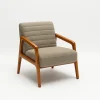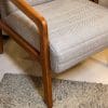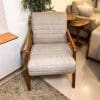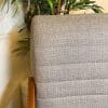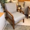 Seu estofamento foi projetado para proporcionar conforto superior e longa durabilidade, com espuma D33 no assento (mais firme e resistente) e D28 no encosto (macia e acolhedora). A estrutura em madeira maciça reforça a robustez da peça, enquanto os braços e pés esculpidos em madeira adicionam um toque artesanal e sofisticado.