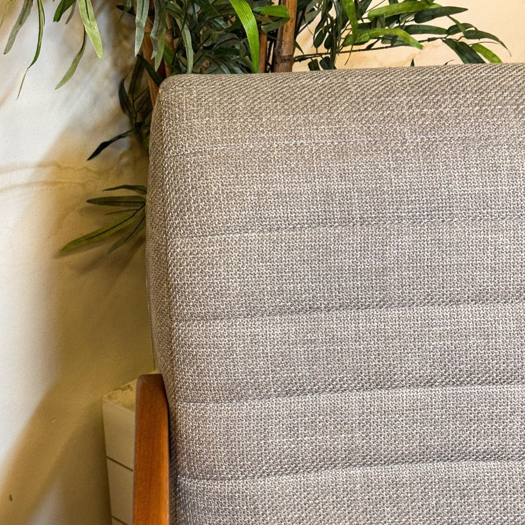 Revestida em tecido Ravena Areia, a poltrona transmite leveza e sofisticação, harmonizando com tons neutros e ambientes elegantes.