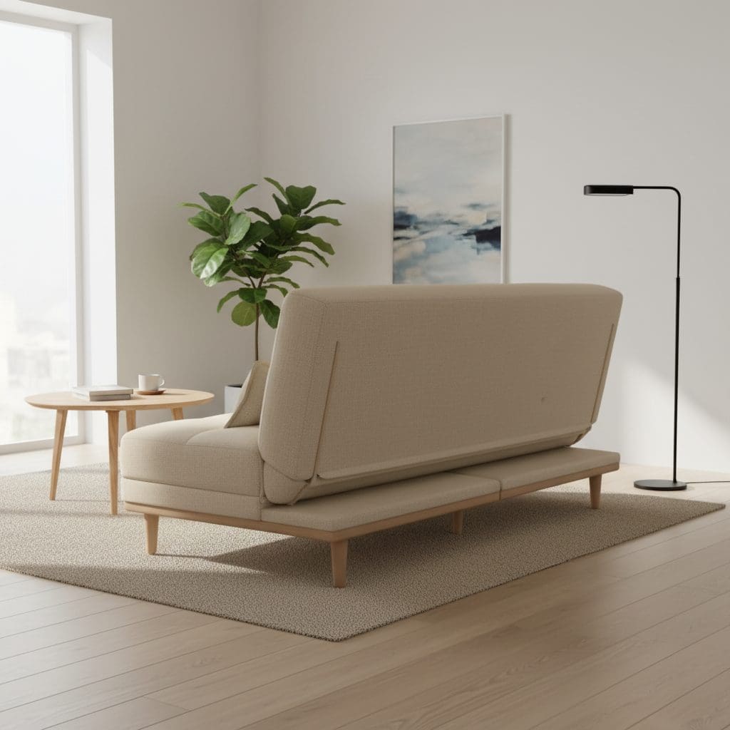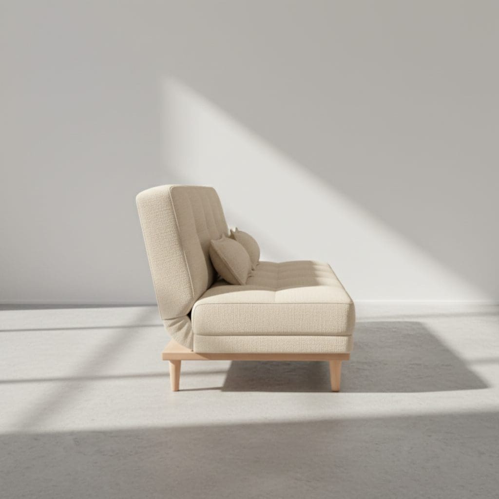 O Sofá-Cama Madrid é a escolha perfeita para quem precisa de um móvel versátil que une praticidade e elegância. Revestido em tecido veludo bege acinzentado, ele oferece toque macio e visual sofisticado, adaptando-se a diversos ambientes como salas, quartos, escritórios ou espaços compactos.