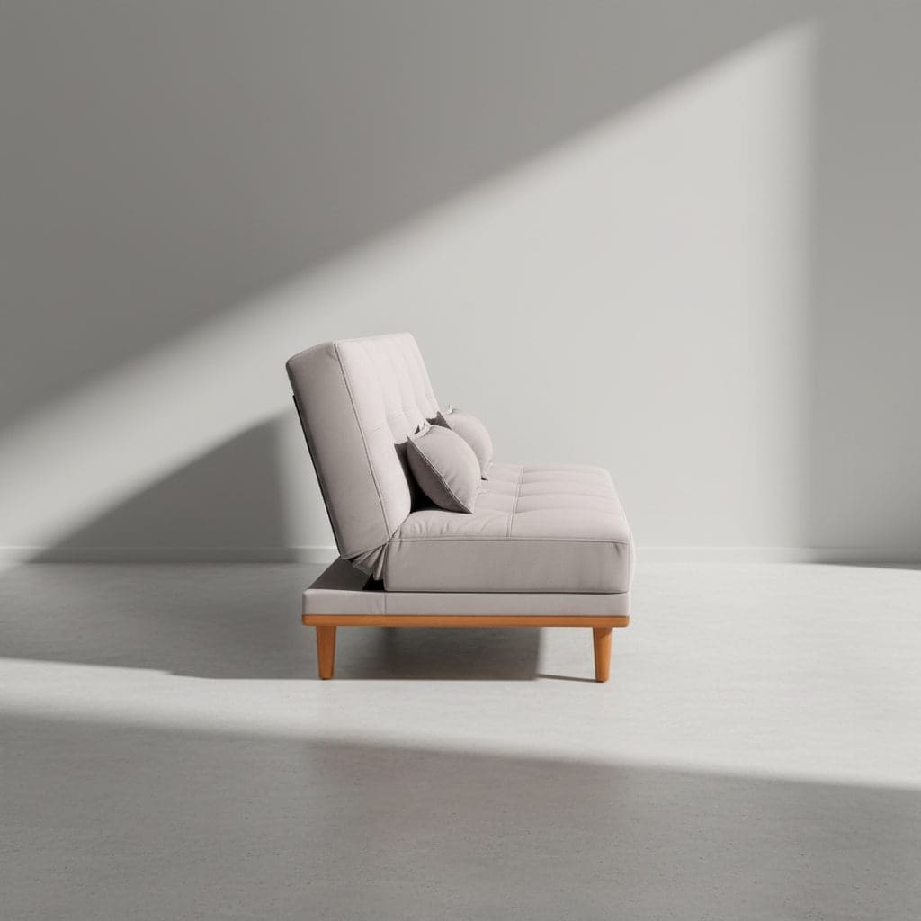 O Sofá-Cama Madrid é a solução perfeita para quem busca conforto durante o dia e praticidade durante a noite. Com revestimento em tecido veludo com aparência de linho bege acinzentado, o modelo oferece um visual sofisticado, toque macio e versatilidade para compor salas, quartos, escritórios ou ambientes compactos.
