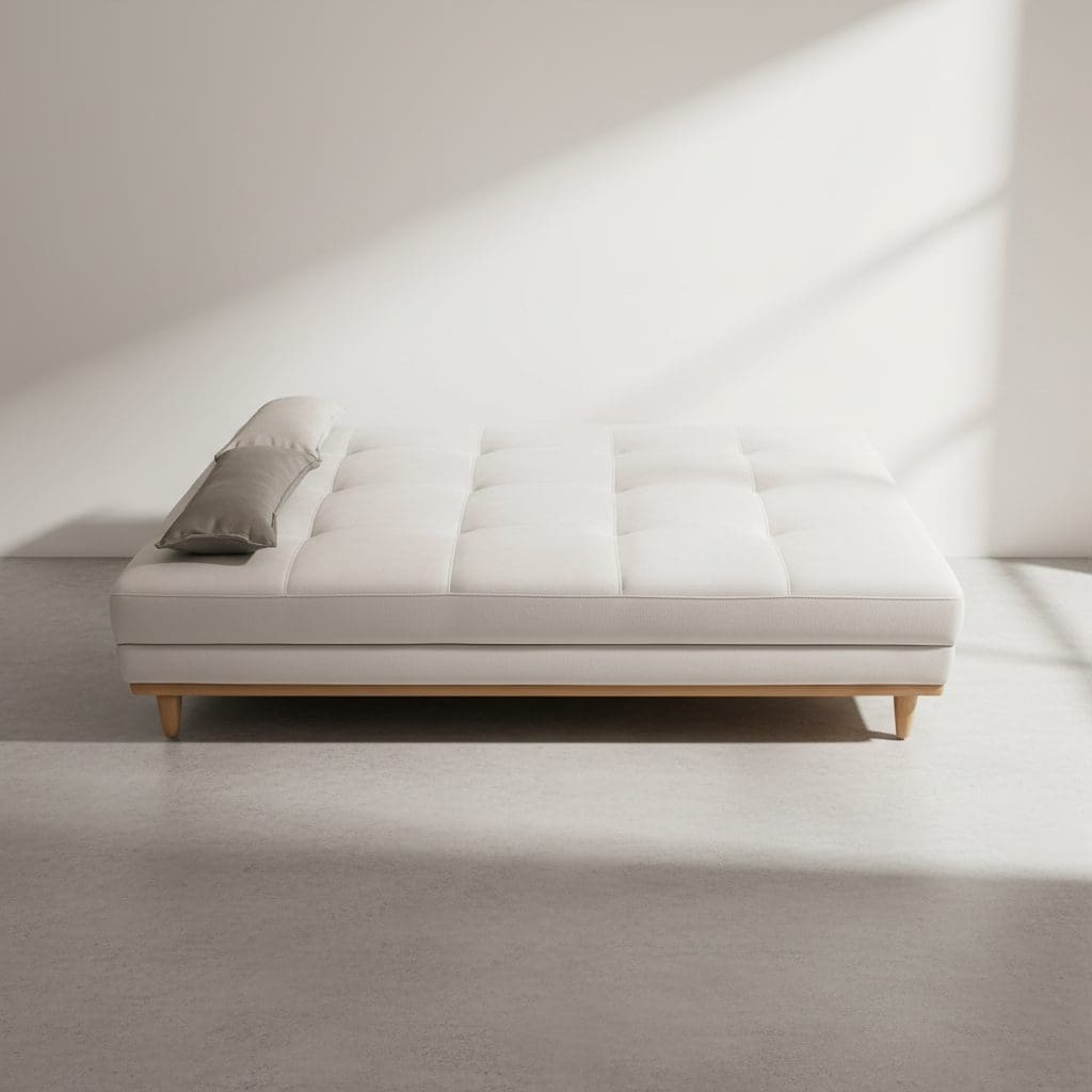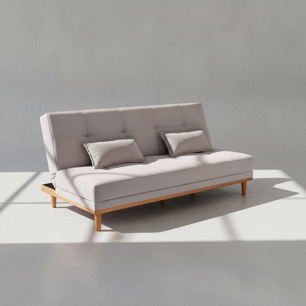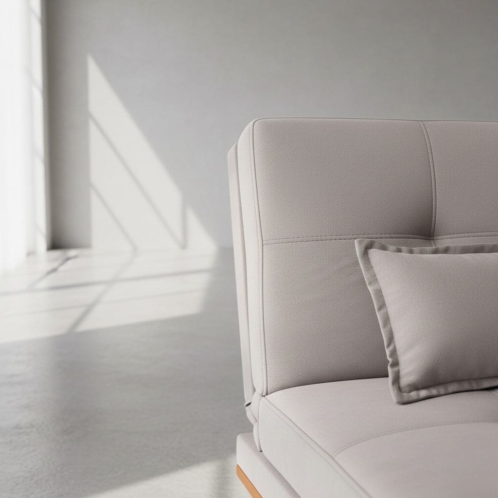 Estofado com espuma D26, proporciona um assento e cama de uso ocasional com firmeza equilibrada. Ideal para quem precisa de um sofá funcional que se transforma facilmente em cama, sem abrir mão da elegância.