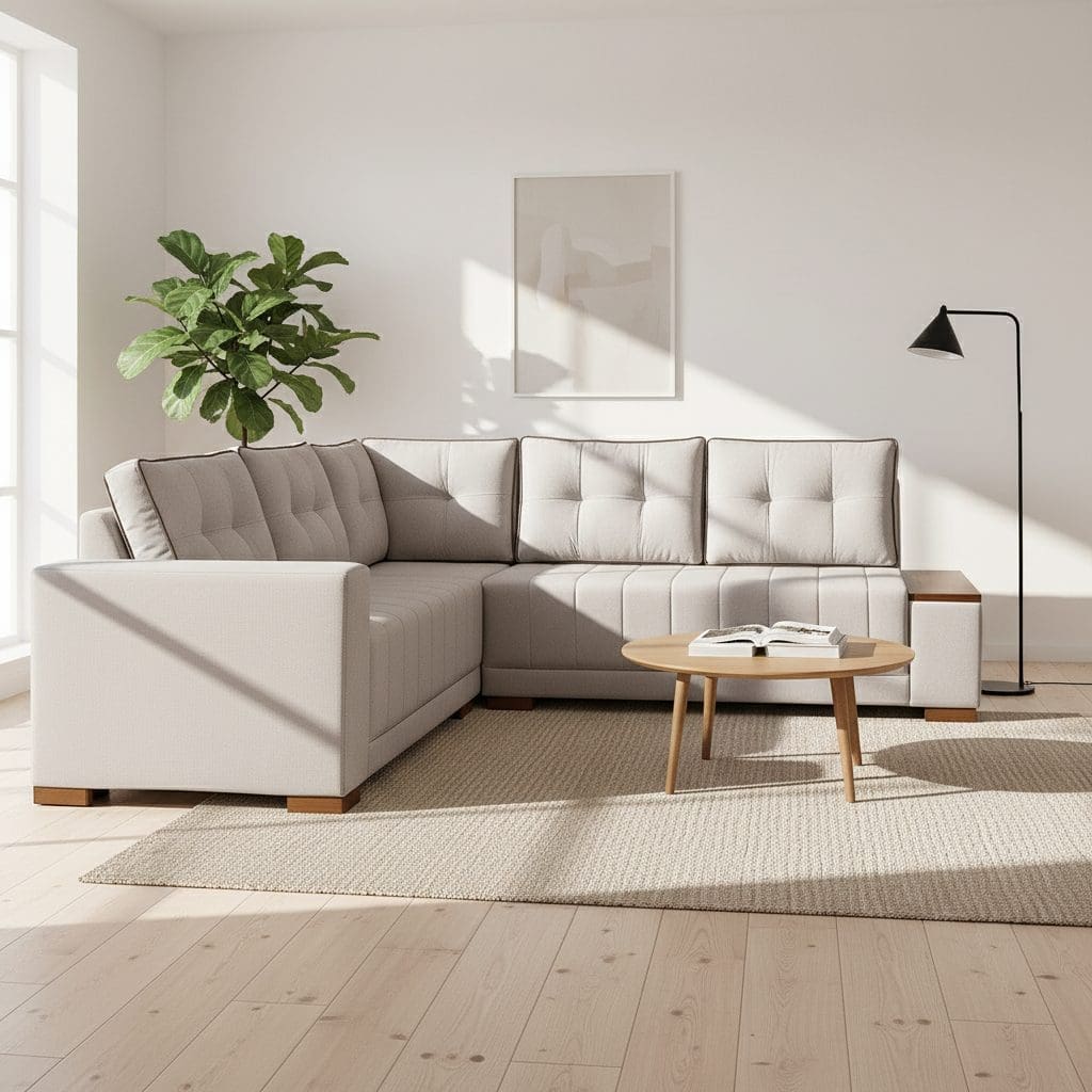 O Sofá de Canto Agnes 236×236 cm da Vezzo Móveis é a escolha ideal para quem deseja unir design funcional, conforto e sofisticação em um só ambiente. Com estrutura em madeira de eucalipto reflorestado, ele garante resistência, durabilidade e sustentabilidade.